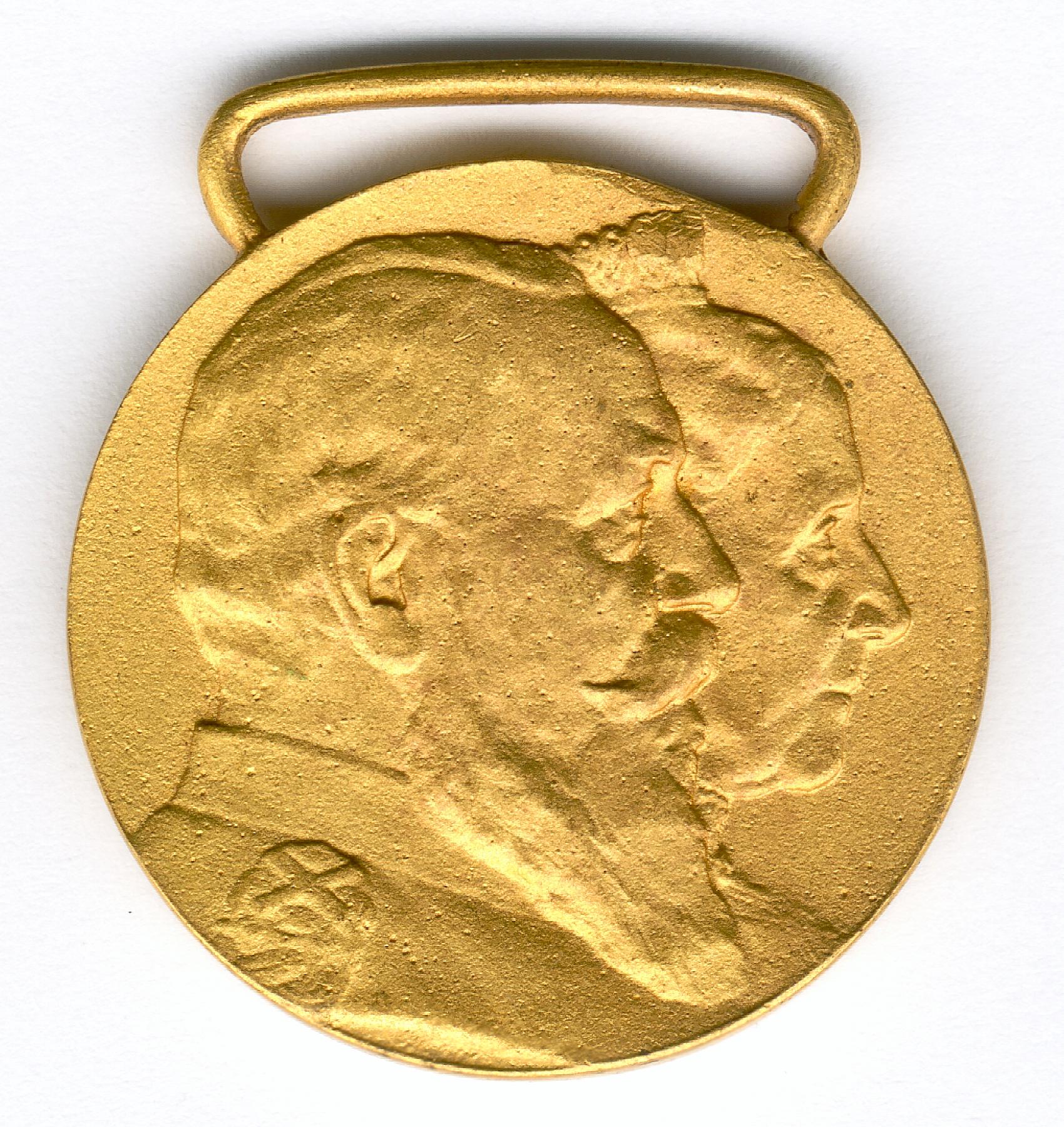 Poor-quality cast of an officially struck example with uneven surface, numerous casting blowholes, and typical surface disruption on the obverse at around 1 pm. The relief is reproduced so weakly that the engraver Prof. Rudolf Mayer’s initials, “R.M.,” are completely gone. Also, the medal’s diameter of 36.6 mm is too small; the die-struck original measures 38.3 mm according to the relevant literature. Thus the medal weighs only about 27.3 grams (literature: 29.0 grams). The medal and suspension are cast in one piece, in contrast to the original where the suspension is made of an attached length of wire. There are also traces of rough filing between the suspension and the edge of the medal.