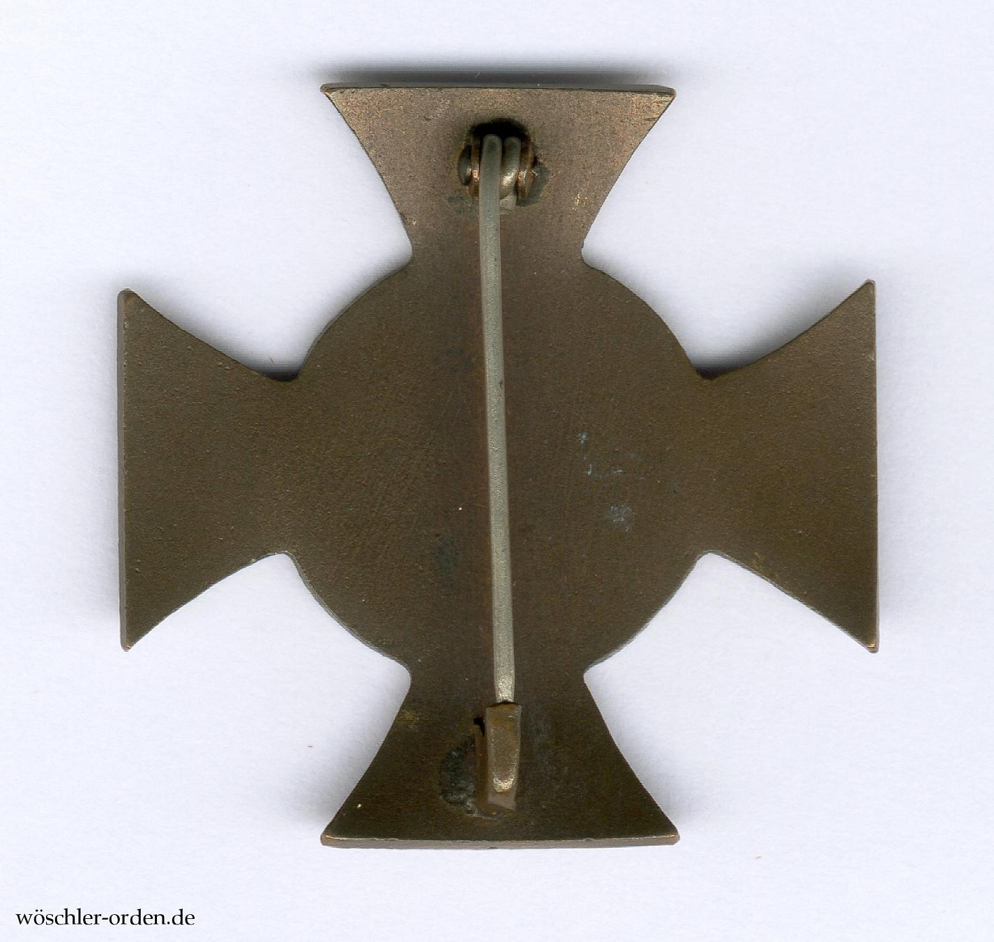 Buntmetall einseitig geprägt und patiniert, rückseitig mit einfacher, dünner Rundnadel. Die Auffassung Scharfenbergs, wonach die Stiftung eines Steckkreuzes analog zum preußischen Eisernen Kreuz I. Klasse im Jahre 1918 vorgesehen gewesen sein dürfte, und es sich bei den vorkommenden Kreuzen möglicherweise um diese nicht mehr zur Verleihung gekommenen Exemplare handeln dürfte, teile ich nicht. Vielmehr gehe ich davon aus, dass es sich bei dem Steckkreuz grundsätzlich um ein „Phantasieprodukt“ findiger Ordenshersteller und -händler aus der Zwischenkriegszeit handelt, weswegen auch keinerlei Vorgänge zur Planung einer Stiftung aktenkundig sind.