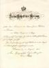 Dazu die Verleihungsurkunde an den Leutnant der Reserve Theodor PICHIER in Dessau vom 13. August 1918(!), tatsächliche Größe 33 x 21 cm, vierseitige Ordens-Statuten sowie ein beschriftetes und gesiegeltes Übersendungs-Kuvert der Ordenskanzlei. Weiter ein zeitgenössischer anhaltinischer Stoffbär, circa 8 x 16 cm.