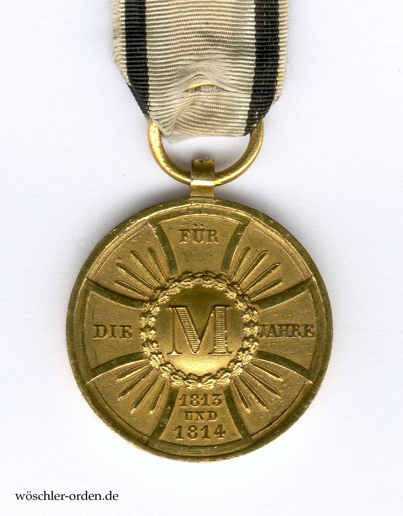 Bayern, Medaille des Militärdenkzeichens für 1813, 1814, 1815 für die Militärbeamten, verliehen 1848.