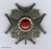 Fertigung der Firma Hermann Jürgens, die ab 1912 letzte Lieferantin war, aus der Zeit des Weltkriegs oder kurz davor. Silber, mehrteilig hohl gefertigt und verbödet, die separat eingesetzten, gekrönte Chiffren ebenso wie der Medaillonring vergoldet. Die Medaillonplatte in Gold gefertigt, strahlenförmig handgraviert und transluzid rot emailliert. An dünner Drahtnadel mit halbrundem Durchschnitt. Für ein beinahe identisches Stück, jedoch mit Schwertern, vgl. Klenau, Seite 173.