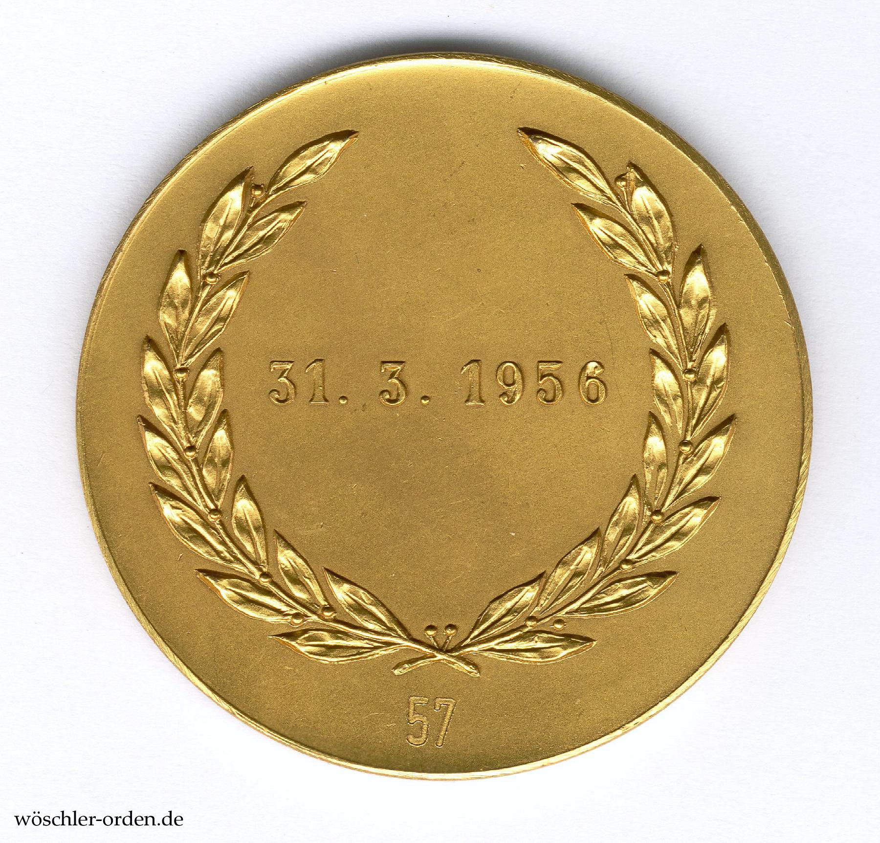 Exemplar der ersten, von 1956 bis 1969 vergebenen Ausgabe, mit rückseitig eingeschlagener Matrikelnummer „57“(!). Messing bronziert, etwa 50 mm.