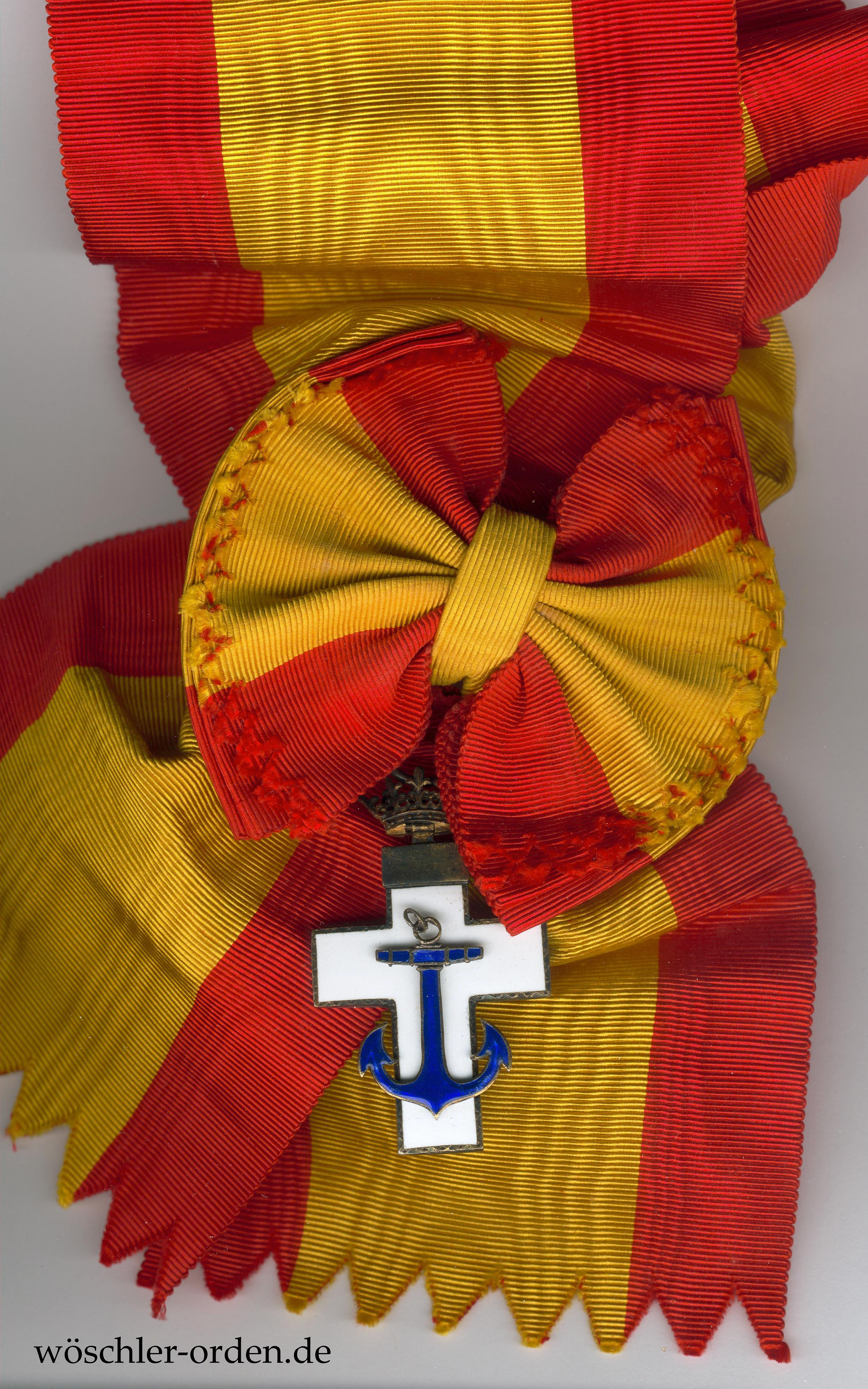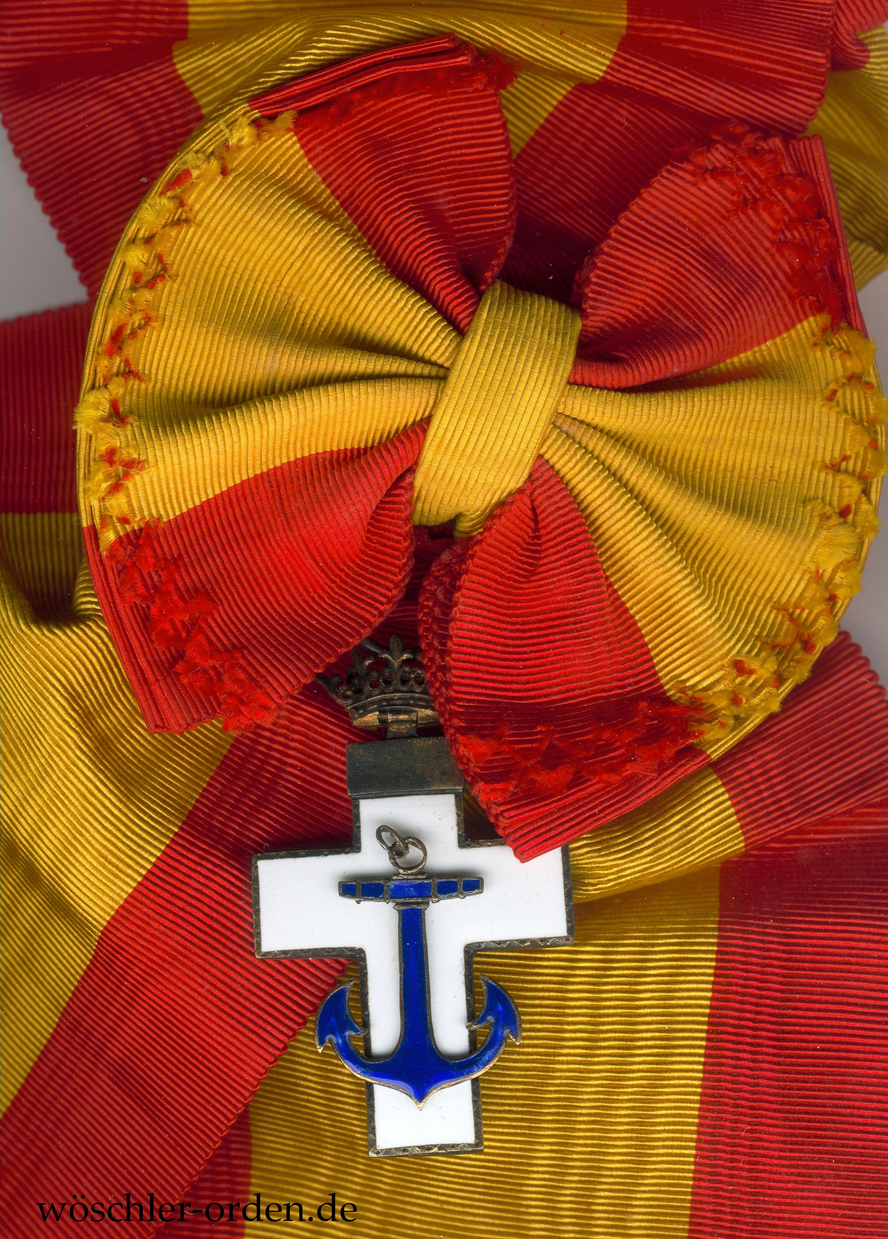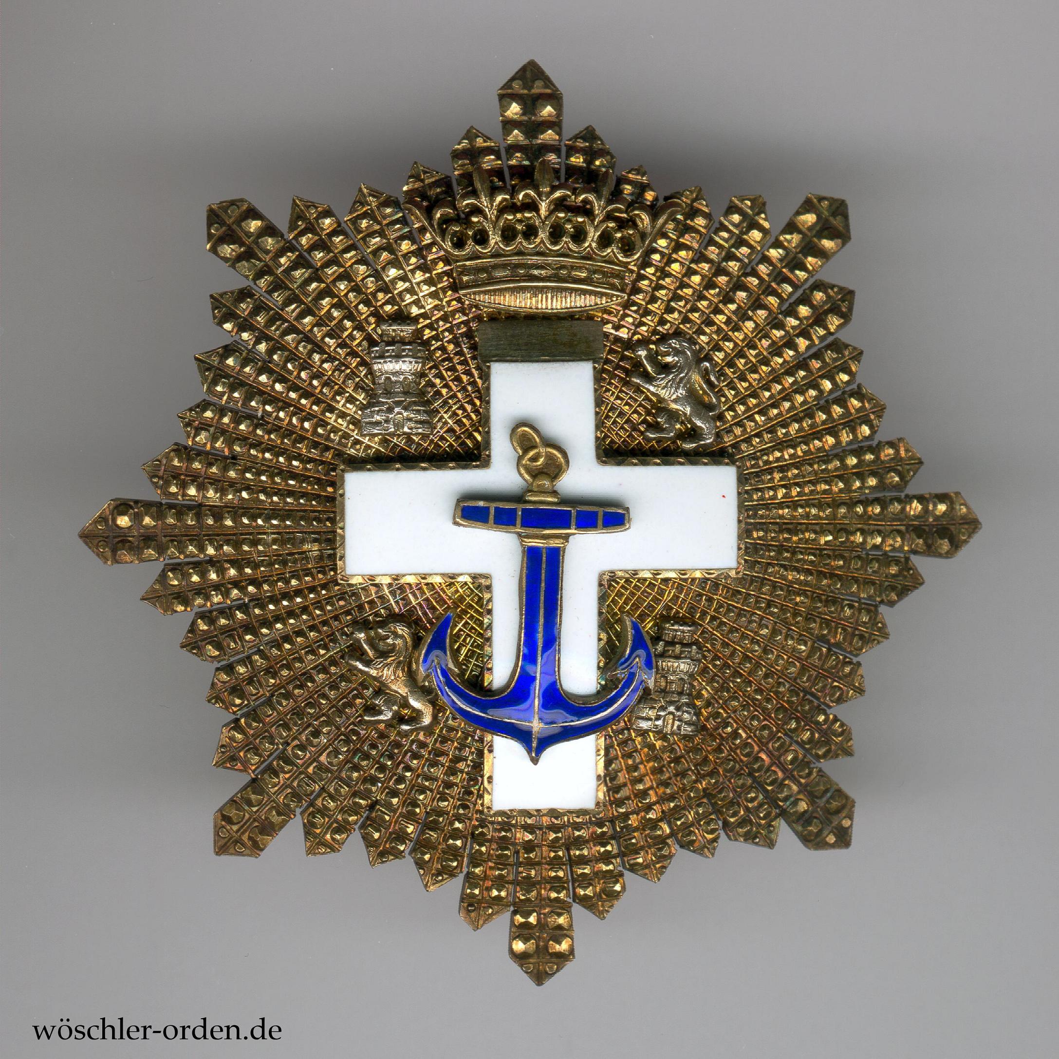 Spanien, Marine-Verdienstorden (Orden del Mérito Naval), Set der 4. Klasse (Großkreuz) der weißen Abteilung (für Verdienste in Friedenszeit) des Modells 1938 – 1975 (Franco-Ära), bestehend aus Großkreuz-Kleinod, wohl silber-vergoldet und emailliert, an Schärpe und zugehörigem Bruststern, wohl ebenfalls silber-vergoldet, mit silbernen, teils emaillierten, vernieteten Auflagen. Rückseitig mehrere Punzierungen.