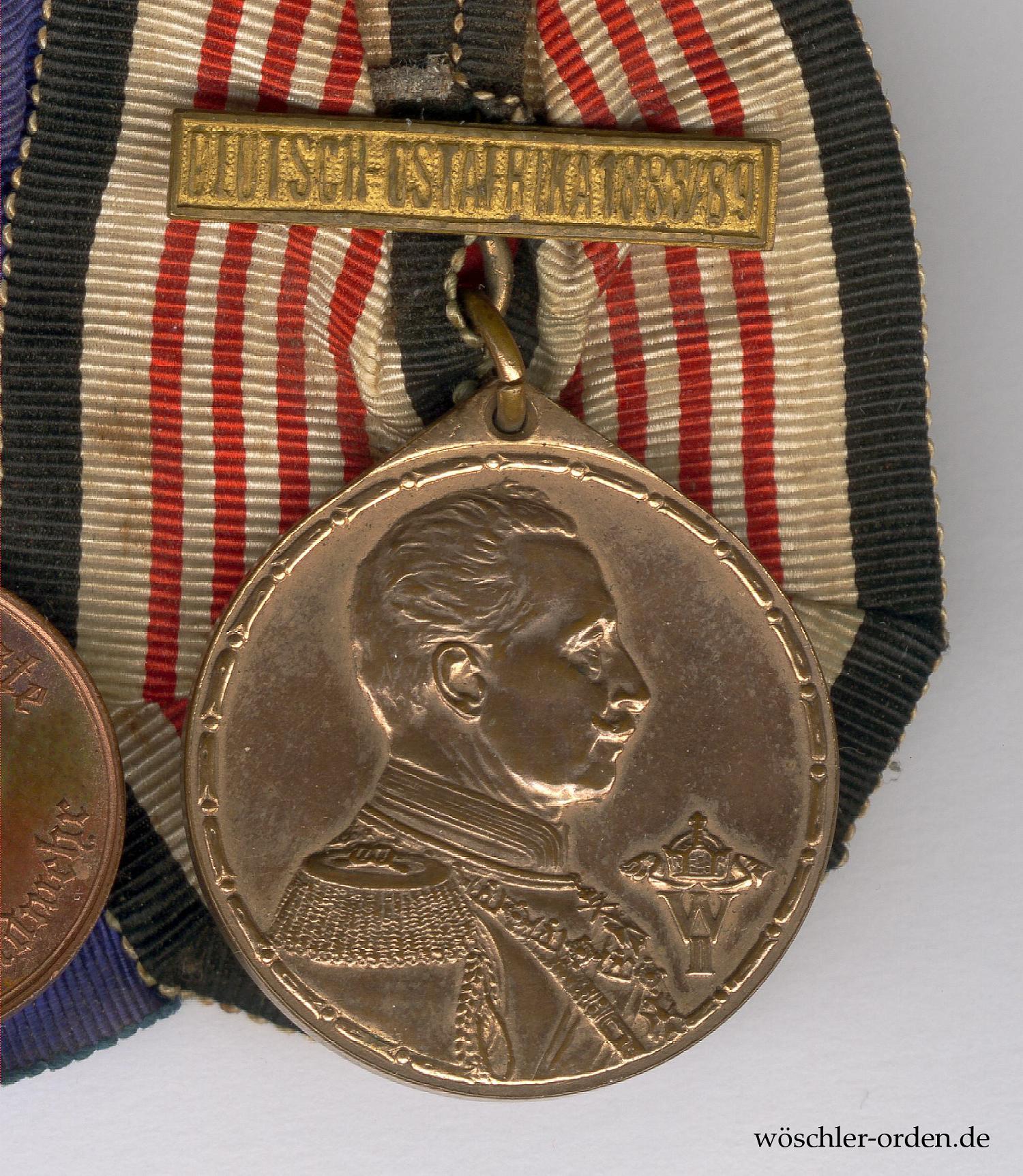• Deutsches Reich, Kolonial-Denkmünze in der Standardausgabe für Weiße, mit Gefechtsspange „DEUTSCH-OSTAFRIKA 1888/89“.