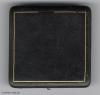 Dazu das schmucklose, mit dunkelgrünem Lederimitat bezogene Etui mit Zierlinien auf dem Deckel, innen gelb in Samt und Seide, mit goldenem Herstellersignet.