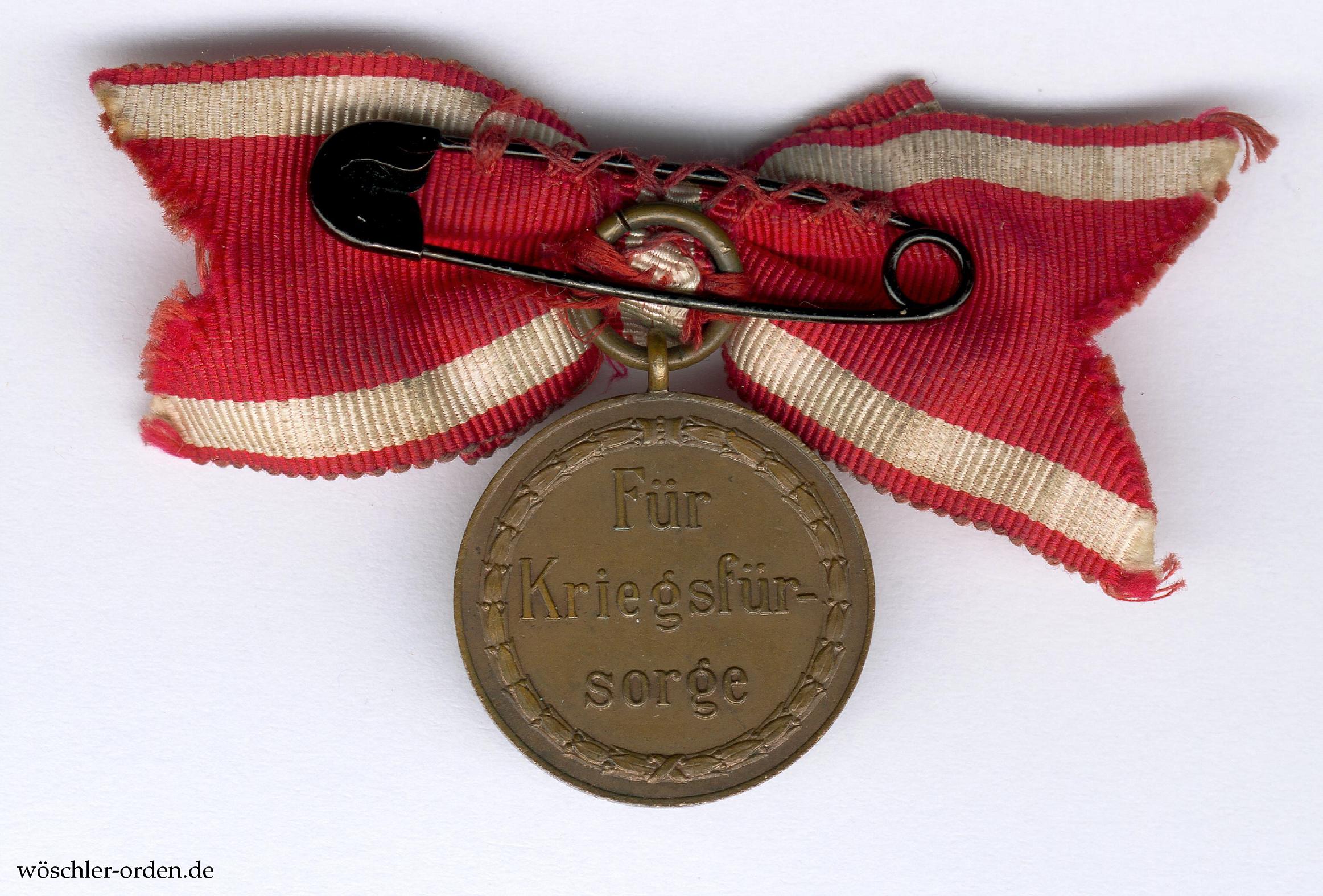 Das Ehrenzeichen für Kriegsfürsorge wurde durch Großherzog Ernst Ludwig am 17. September 1915 zur Belohnung von „Diensten der Kriegsfürsorge“ gestiftet und ab 8. Dezember 1915 auch an Militärs aller Ränge „für militärische Verdienste, die nicht vor dem Feinde erworben sind“ verliehen. Am 26. Juni 1916 wurde das Ehrenzeichen für Kriegsfürsorge zum Kriegsehrenzeichen umgewandelt, bereits verausgabte Ehrenzeichen konnten umgetauscht werden.