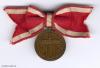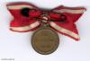 Bronze geprägt, an angelöteter Ringöse mit offenem Bandring. An sauber zur Damenschleife konfektioniertem Band, rückseitig mit vernähter Tragenadel.