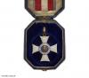 Der Orden in sehr guter, wohl völlig unbeschädigter Erhaltung, mit etwa 16 cm langem, 35 mm breitem Originalband. Das Etui mit einem größeren Kratzer auf dem Deckel, außerdem die Seidenabdeckung des Scharniers gerissen. Hiervon abgesehen altersgemäß gute Erhaltung.