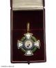 Das Verleihungsetui wohl zumindest aus der Zwischenkriegszeit oder sogar aus der letzten, bundesrepublikanischen Verleihungsperiode des Fürsten Friedrich! Ob es durch einen Sammler ergänzt wurde, oder eine spätere (Neu-) Verleihung des älteren, echt goldenen Kreuzes belegt, muss offen bleiben.