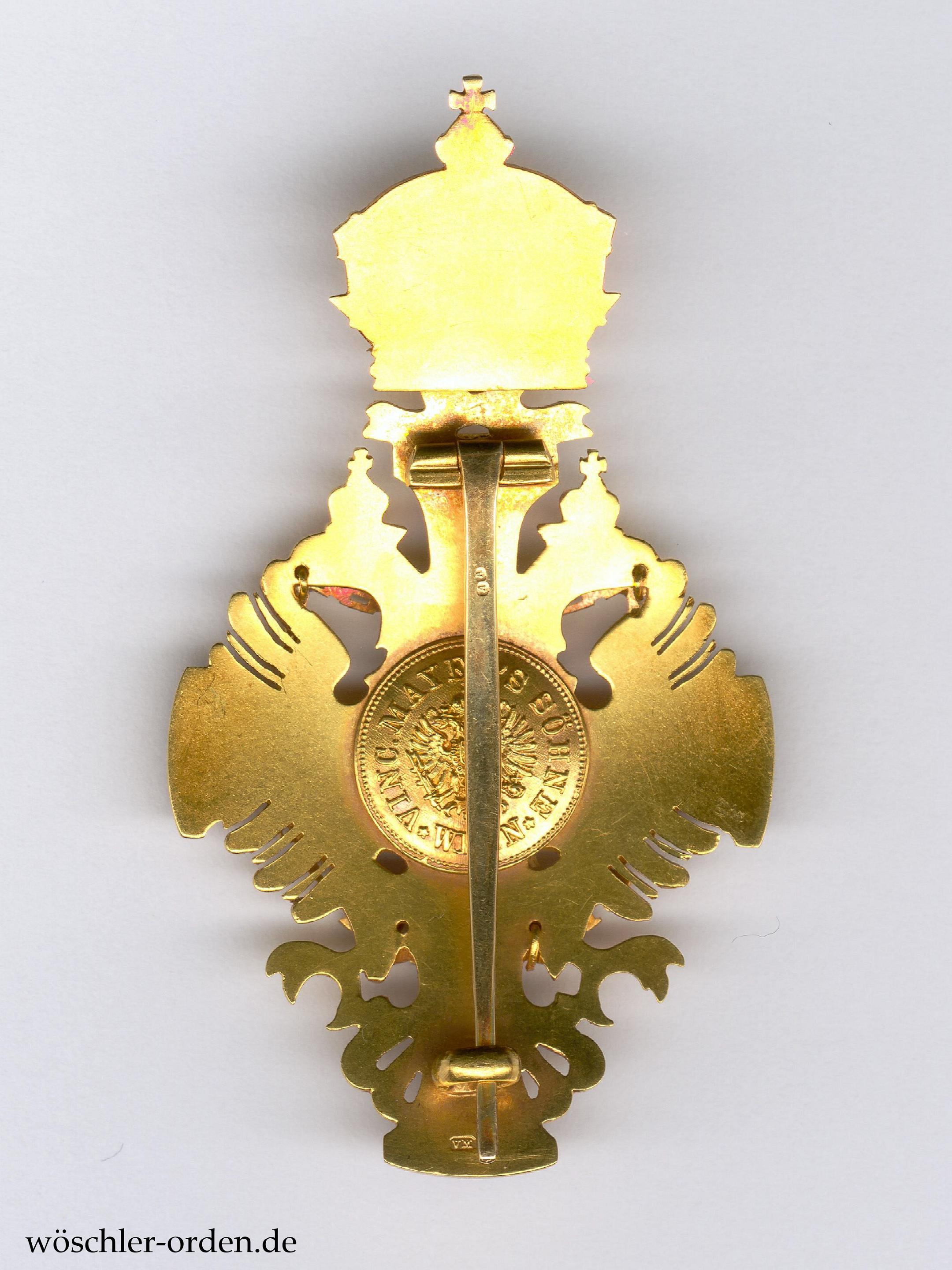 Gold und Emaille, rückseitig Herstellerplakette „VINC. MAYER’S SÖHNE / WIEN“.