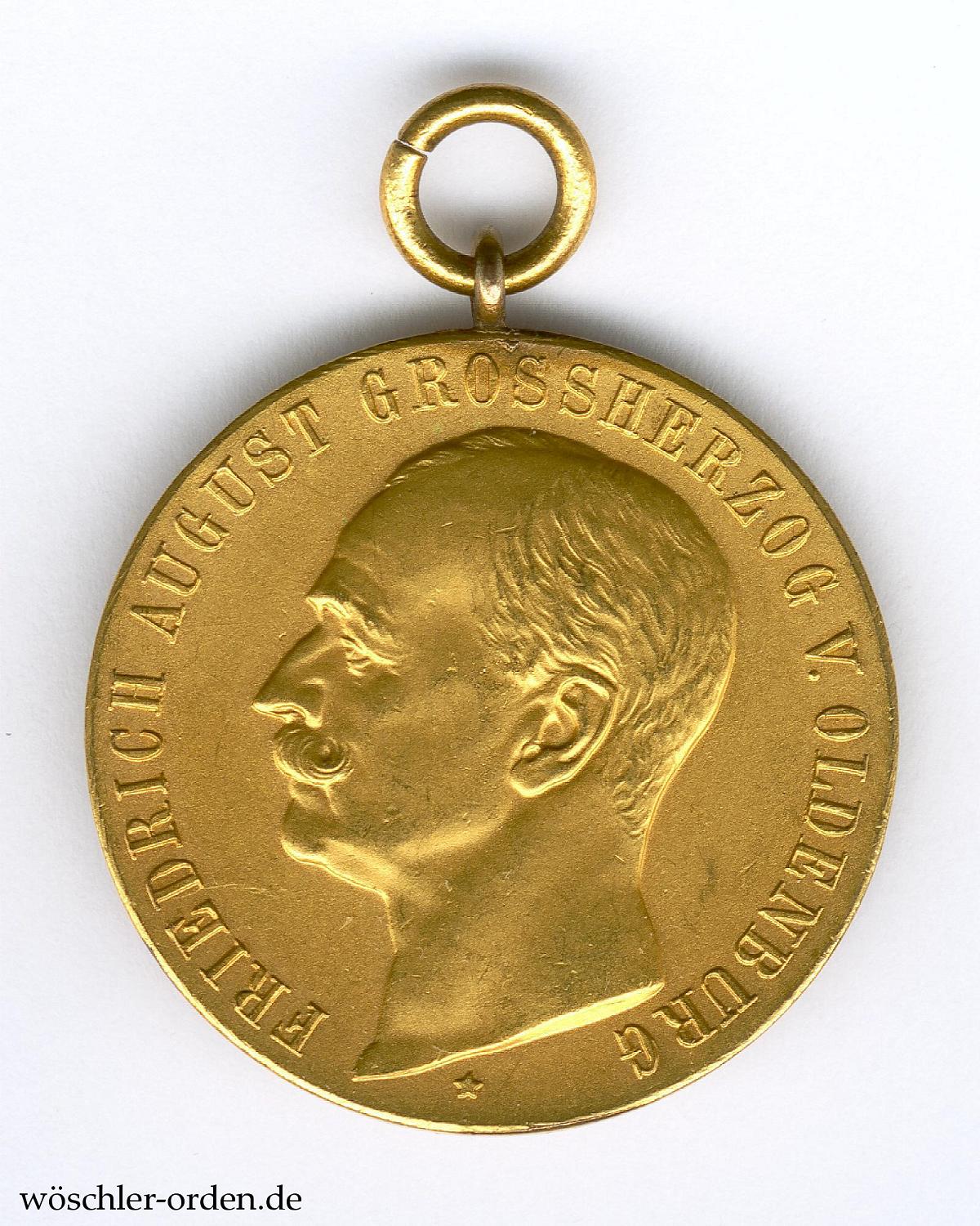 Die Medaillen des oldenburgischen Haus- und Verdienstordens wurden erst 1910 gestiftet. Für die Goldene Verdienstmedaille sind bis zum Ende der Monarchie nur 45 Verleihungen bekannt, geliefert wurden durch den Hofjuwelier Bernhard Knauer nachweislich 55 Medaillen: 30 im Stiftungsjahr 1910, weitere 25 Exemplare 1914.