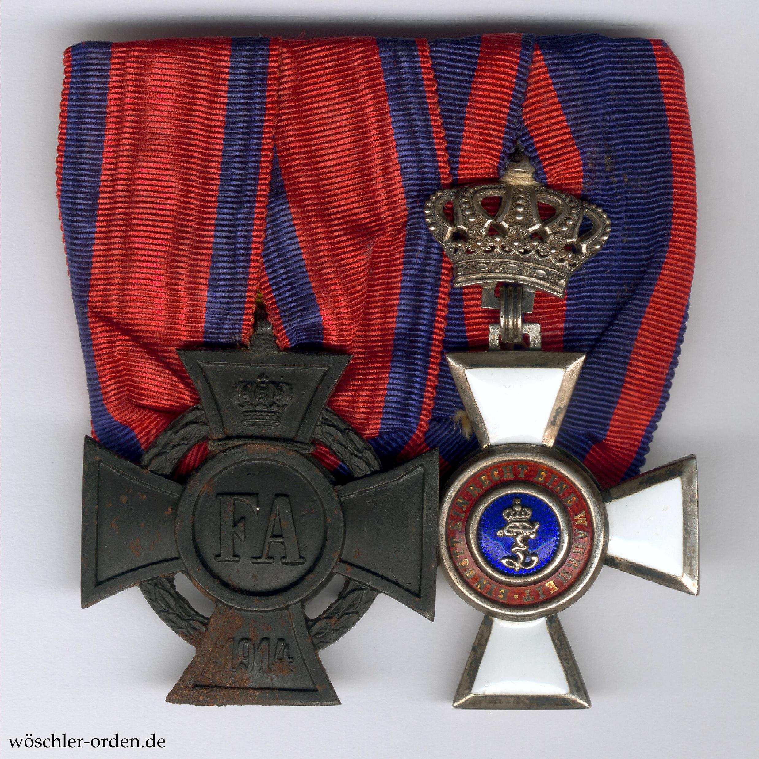 Großherzogtum Oldenburg, 2er Ordensschnalle eines Zivilisten, wohl Staatsdieners oder eventuell eines Fabrikanten o. ä., aus der Zeit des Weltkrieges, mit folgenden Auszeichnungen: