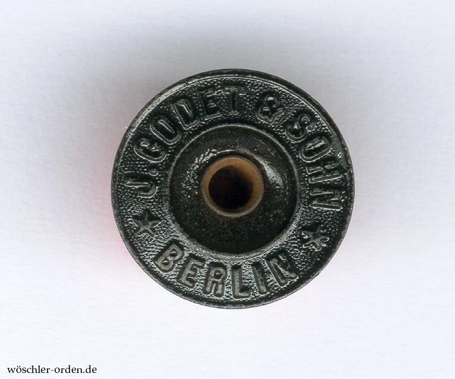 Der Orden in guter, leicht getragener Erhaltung ohne nennenswerte Schäden, mit hübscher, recht gleichmäßiger Patina. Das Etui stellenweise etwas bestoßen, in insgesamt guter, gebrauchter Erhaltung – jedoch wurde die Einlage, um der Schnalle Platz zu bieten, etwas grob modifiziert. Inliegend außerdem eine Bandrosette, am schwarzen Knopf von J. Godet & Sohn, Berlin.