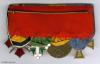 Die Orden mit jeweils geringfügigen, tragebedingten Emailleschäden, die Bänder minimal verblasst. Die Schnalle insgesamt in guter, leicht getragener Erhaltung.