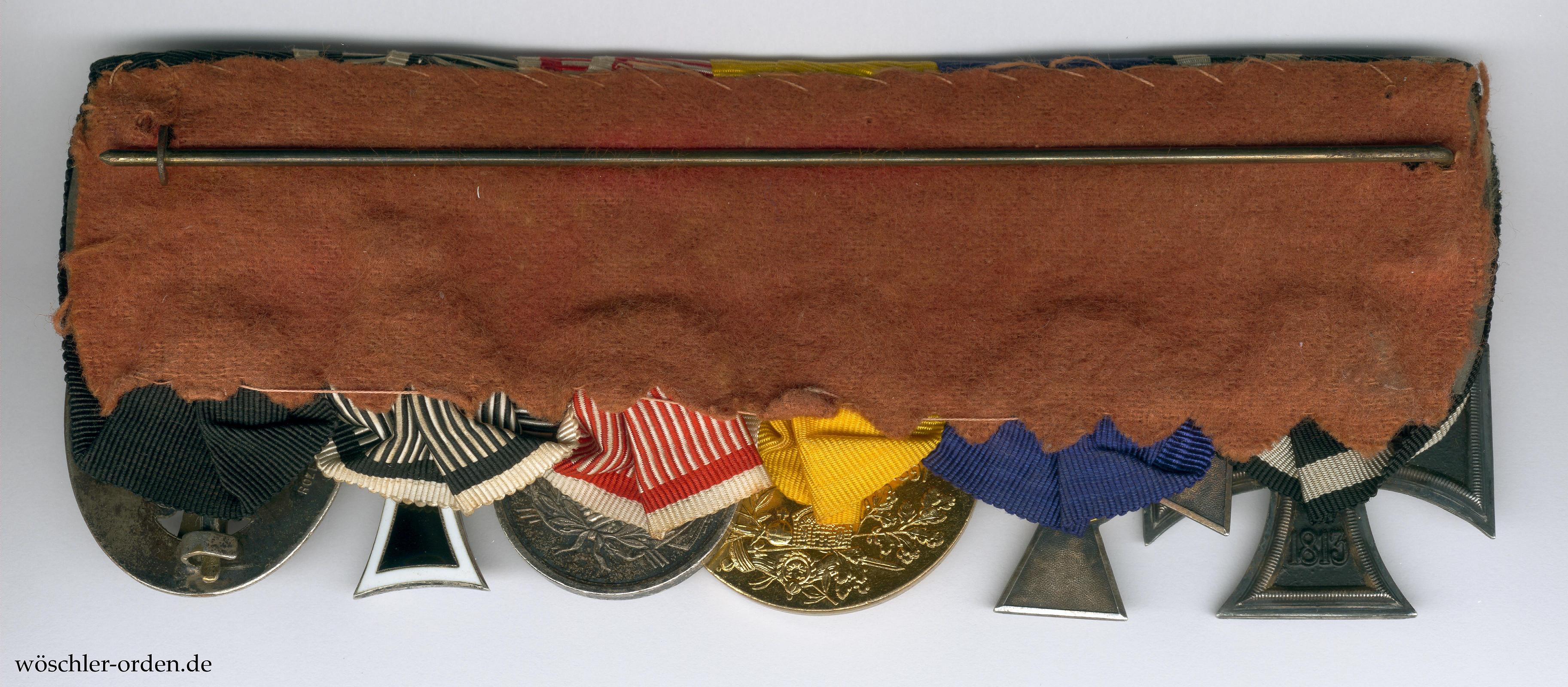 Preußen, 6er Ordensschnalle eines Reserve- oder Landwehroffiziers, mit folgenden Auszeichnungen: