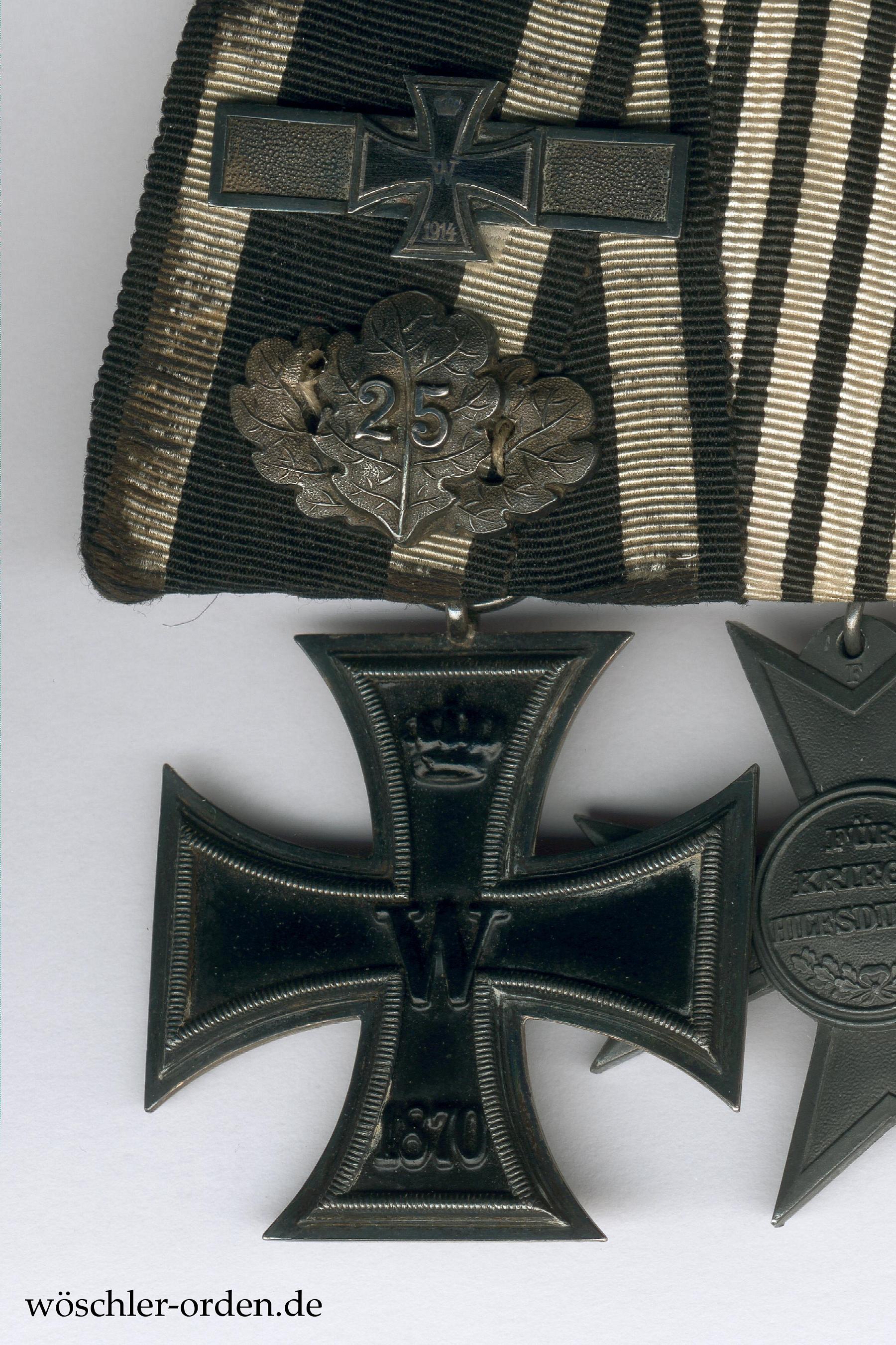 - Preußen, Eisernes Kreuz 1870 II. Klasse mit Jubiläums-Eichenlaub (1895) und Wiederholungsspange 1914 (1915);