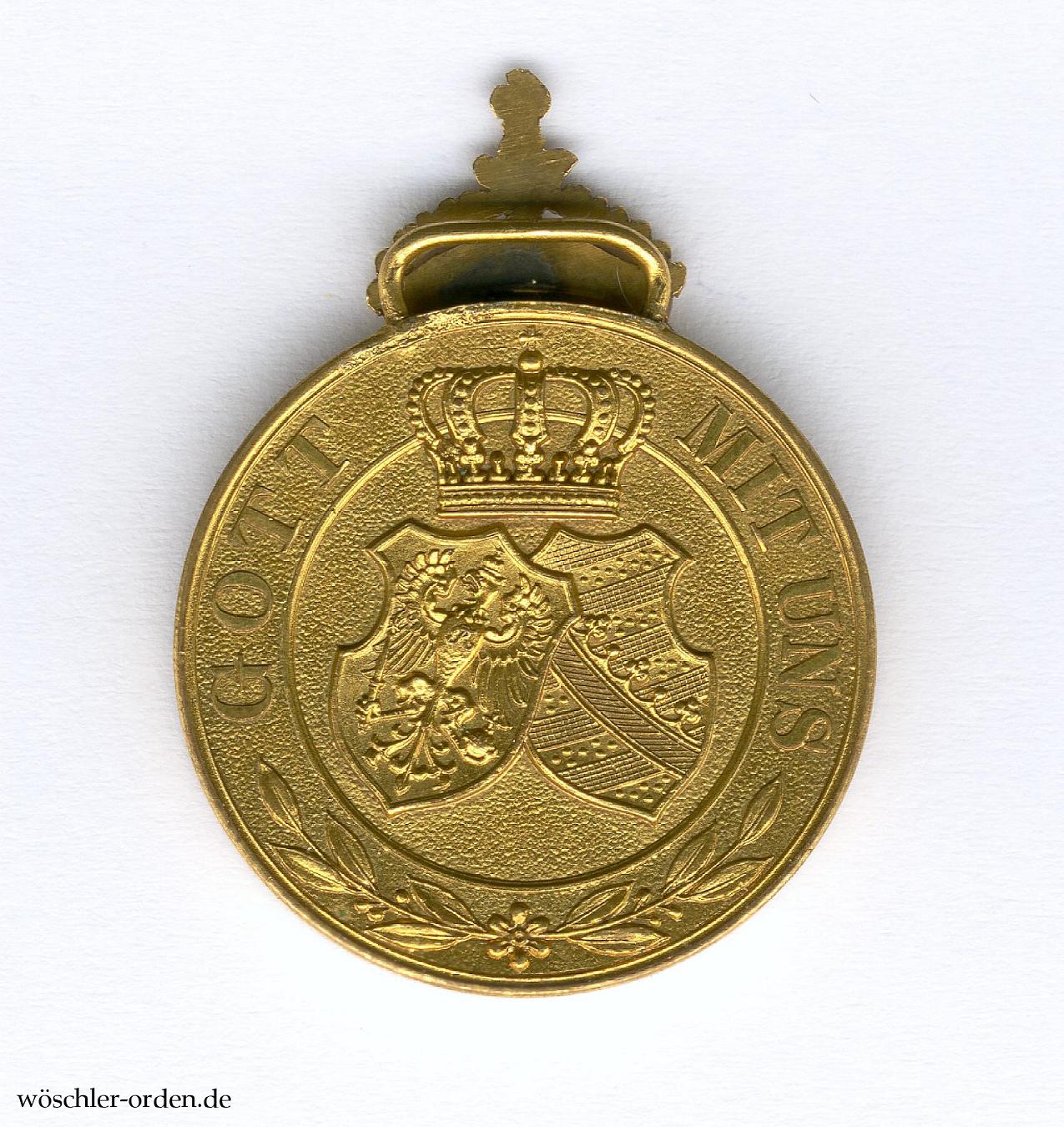 Die Goldene-Hochzeits-Medaille wurde am 11. Juni 1879 durch Wilhelm I. zur Erinnerung an die Feier seiner Goldenen Hochzeit mit Königin Augusta in drei Klassen gestiftet. Die erste Klasse, vergoldet und teilemailliert, war für Verwandte und die fürstlichen Gäste bestimmt, die ebenfalls vergoldete, jedoch unemaillierte II. Klasse für Offiziere und Beamte, und die III., kupferne, für rangniedriges Hofpersonal. Gefertigt wurden 100 Medaillen I. Klasse, 175 Medaillen II. Klasse sowie 100 Medaillen III. Klasse.