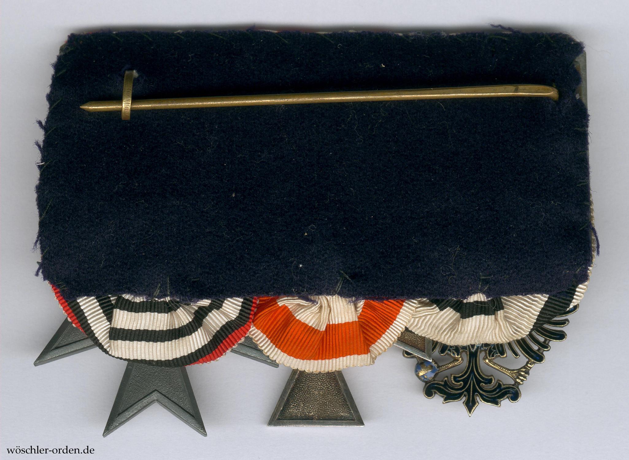 Deutsches Reich, 3er Ordensschnalle wohl eines vormals Königlich Preußischen Staatsdieners, der von Wilhelm II. aus dessen Doorner Exil erneut ausgezeichnet wurde, mit folgenden Auszeichnungen: