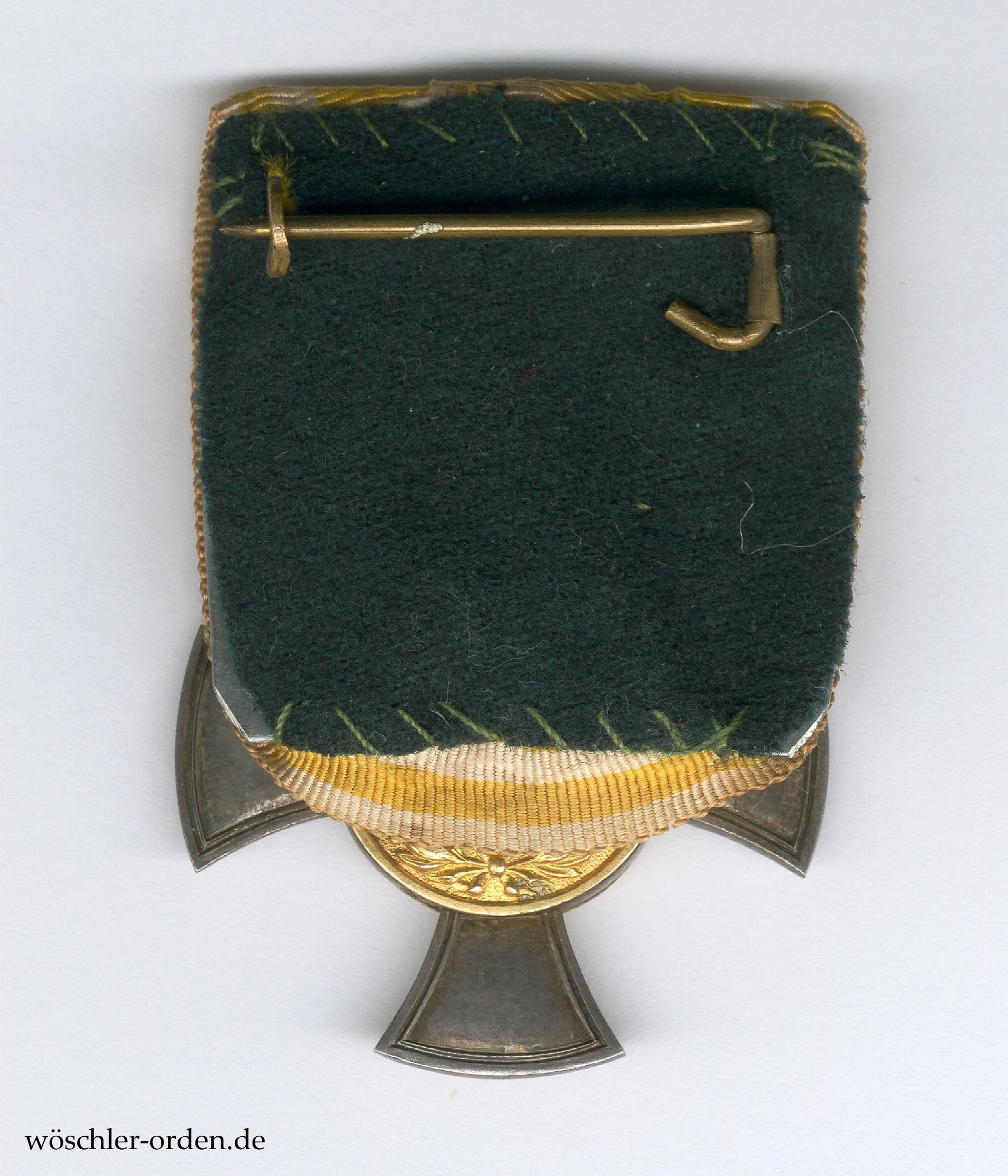 Schöne, nur leicht getragene Erhaltung, mit einer hübschen Patina. An schöner, kraus vernähter 1er Ordensschnalle, rückseitig mit Tragenadel und grüner Stoffabdeckung.