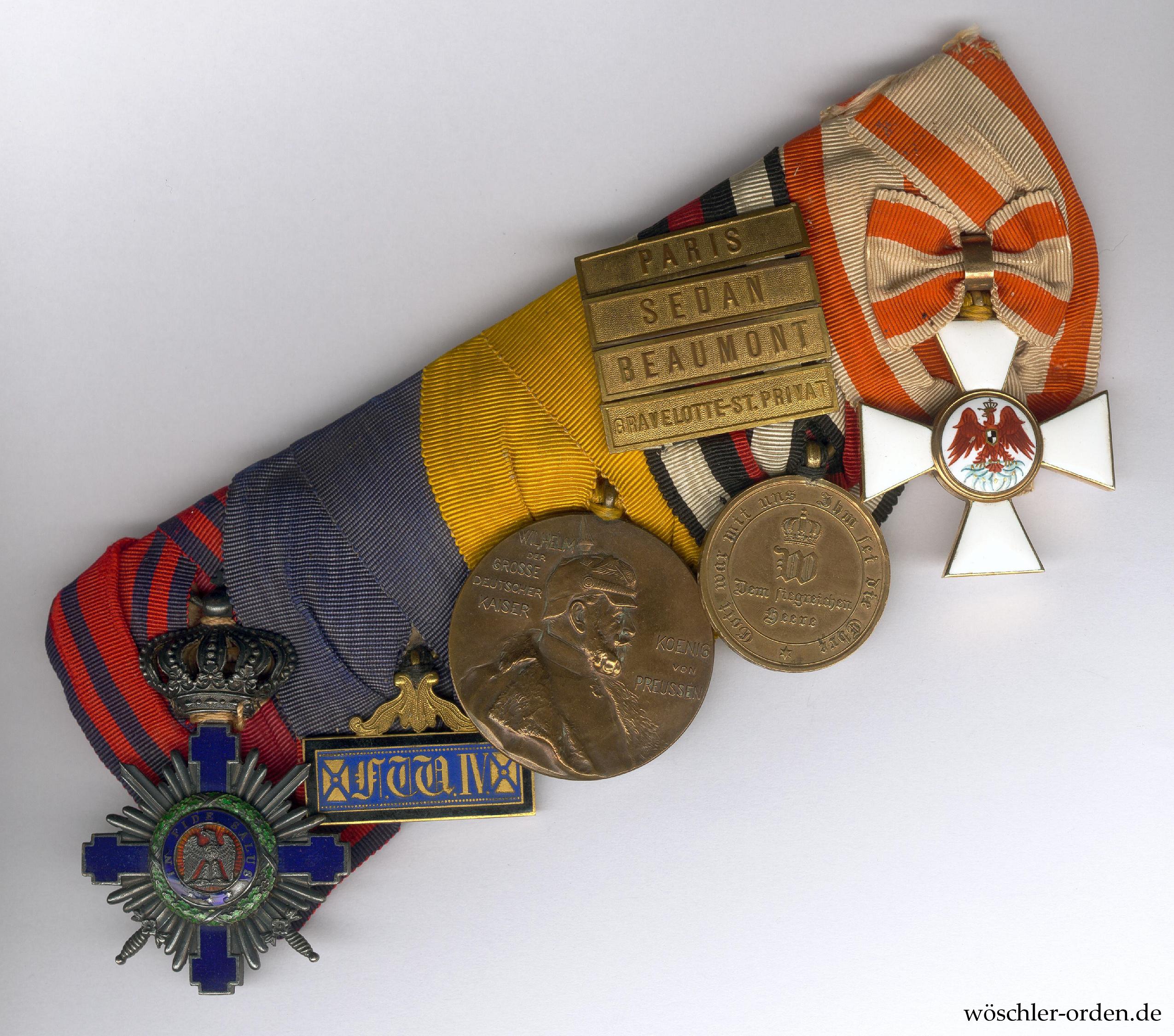 • Preußen, Kaiser-Wilhelm-I.-Erinnerungsmedaille;• Preußen, Landwehr-Dienstauszeichnung II. Klasse (1. Modell);
