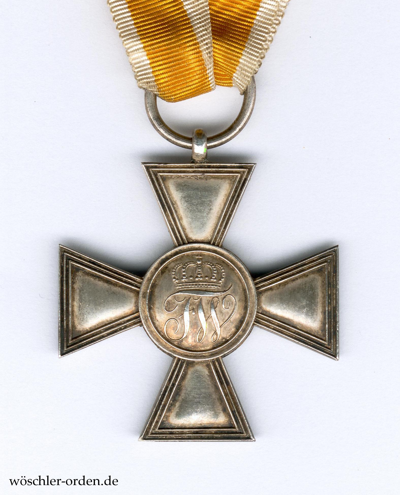 Exemplar des Modells mit emailliertem Vorderseitenmedaillon (ab 1846) mit violetter Adlermalerei (bis 1854) und dem Rückseitenmedaillon mit der breiten Königskrone (wohl ab 1847). Silber, das Medaillon emailliert. Ohne ersichtliche Herstellerpunzierung, nach Andreas Schulze-Isings Typologie der Adlermalerei jedoch eventuell Wilm, Berlin, zuzuordnen.