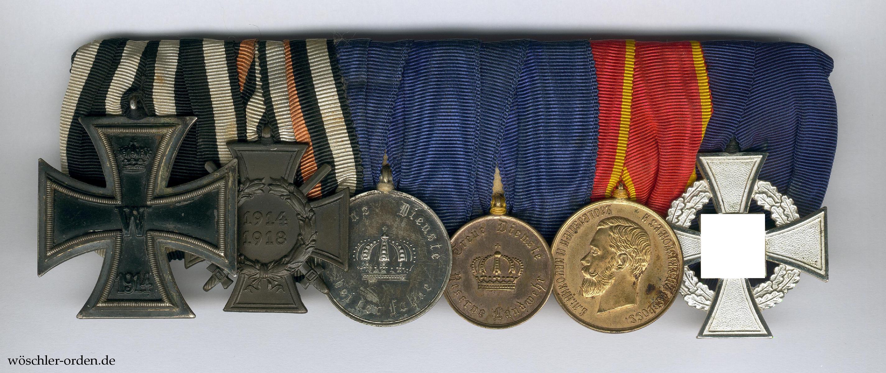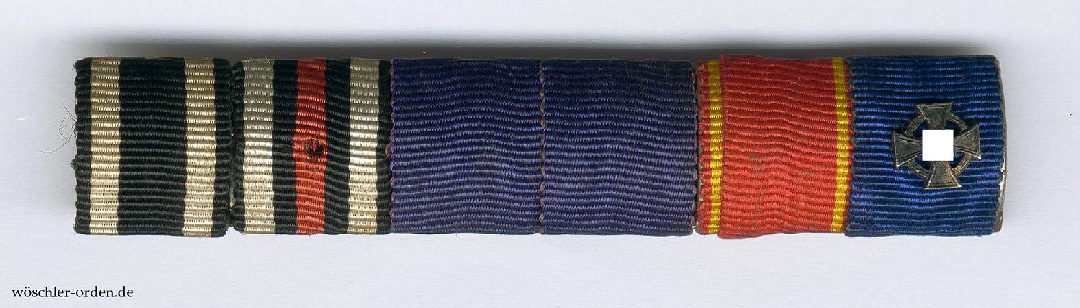 Deutsches Reich, 6er Ordensschnalle eines Staatsdieners und Weltkriegs- sowie mutmaßlichen Freikorpsveteranen, mit folgenden Auszeichnungen: