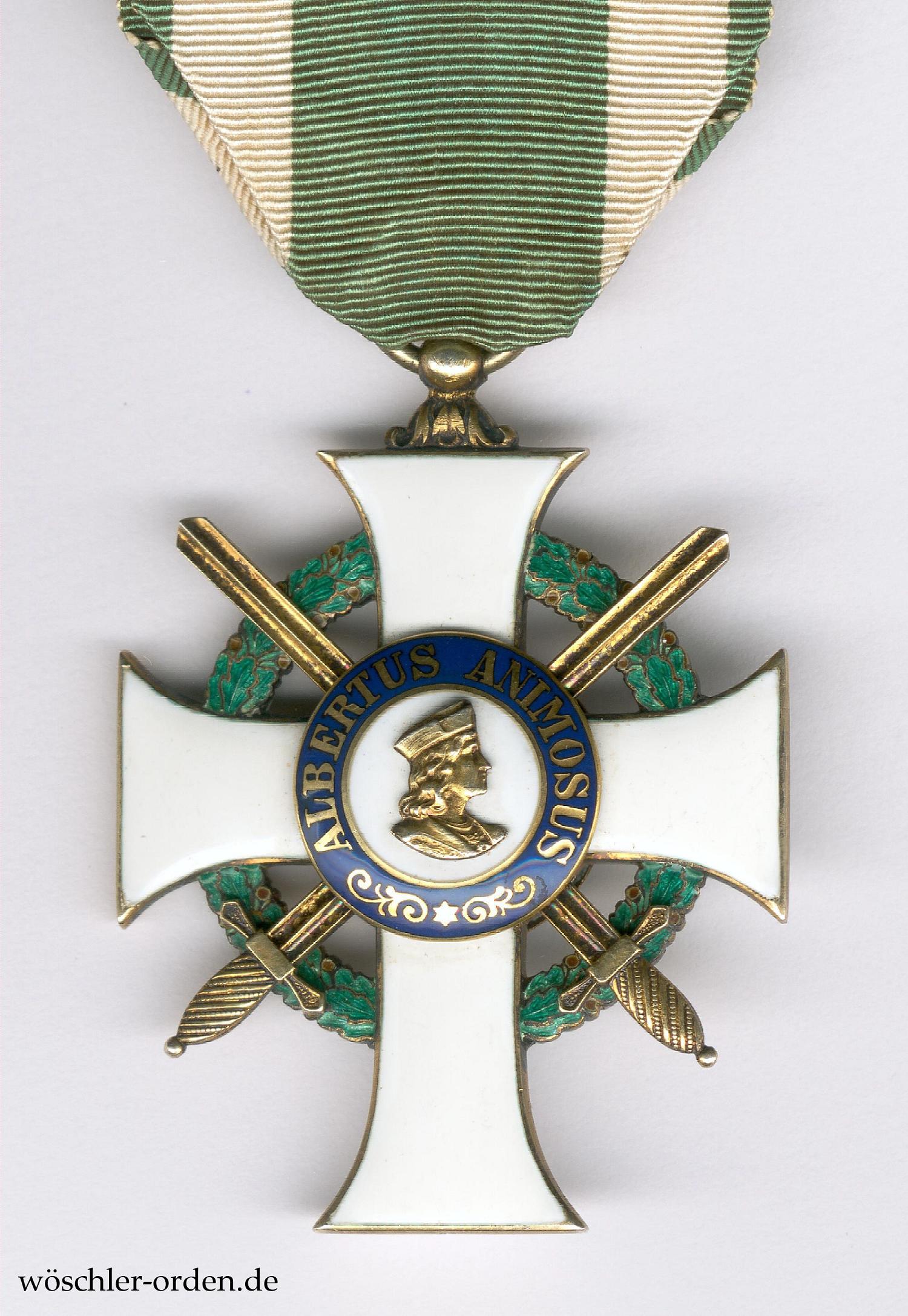 Der Königlich Sächsische Albrechtsorden wurde am 31. Dezember 1850 durch Friedrich August II. zum Andenken an den Stammvater der Albertinischen Linie des Hauses Sachsen, Herzog Albrecht den Beherzten, als allgemeiner Verdienstorden in ursprünglich fünf Klassen gestiftet. Nachdem Mitte der 1870er-Jahre festgestellt wurde, dass die Medaillons wegen einer Verwechslung den ernestinischen(!) Kurfürsten Friedrich III. darstellen, wurden die Insignien umgestaltet. Im Lauf der Jahrzehnte wurden mehrfach Klassen erweitert und umbenannt, außerdem konnten die Dekorationen ab 1866 mit Schwertern, ab 1870 auch – nach preußischem Vorbild – mit Schwertern am Ring verliehen werden. Die Verleihungen wurden mit dem Ende der Monarchie im November 1918 eingestellt. Für das Ritterkreuz I. Klasse mit Schwertern weist Oswald 3779 Verleihungen nach, zum allergrößten Teil für den Weltkrieg, davon 2524 an Inländer sowie 1255 an Ausländer, also Nicht-Sachsen. Diese Zahlen scheinen jedoch zumindest nicht ganz vollständig zu sein.