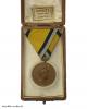 Die Medaille in guter, leicht getragener Erhaltung, stellenweise etwas fleckig patiniert, das Band noch recht farbfrisch. Das Etui oberflächlich etwas berieben, aber noch schön.