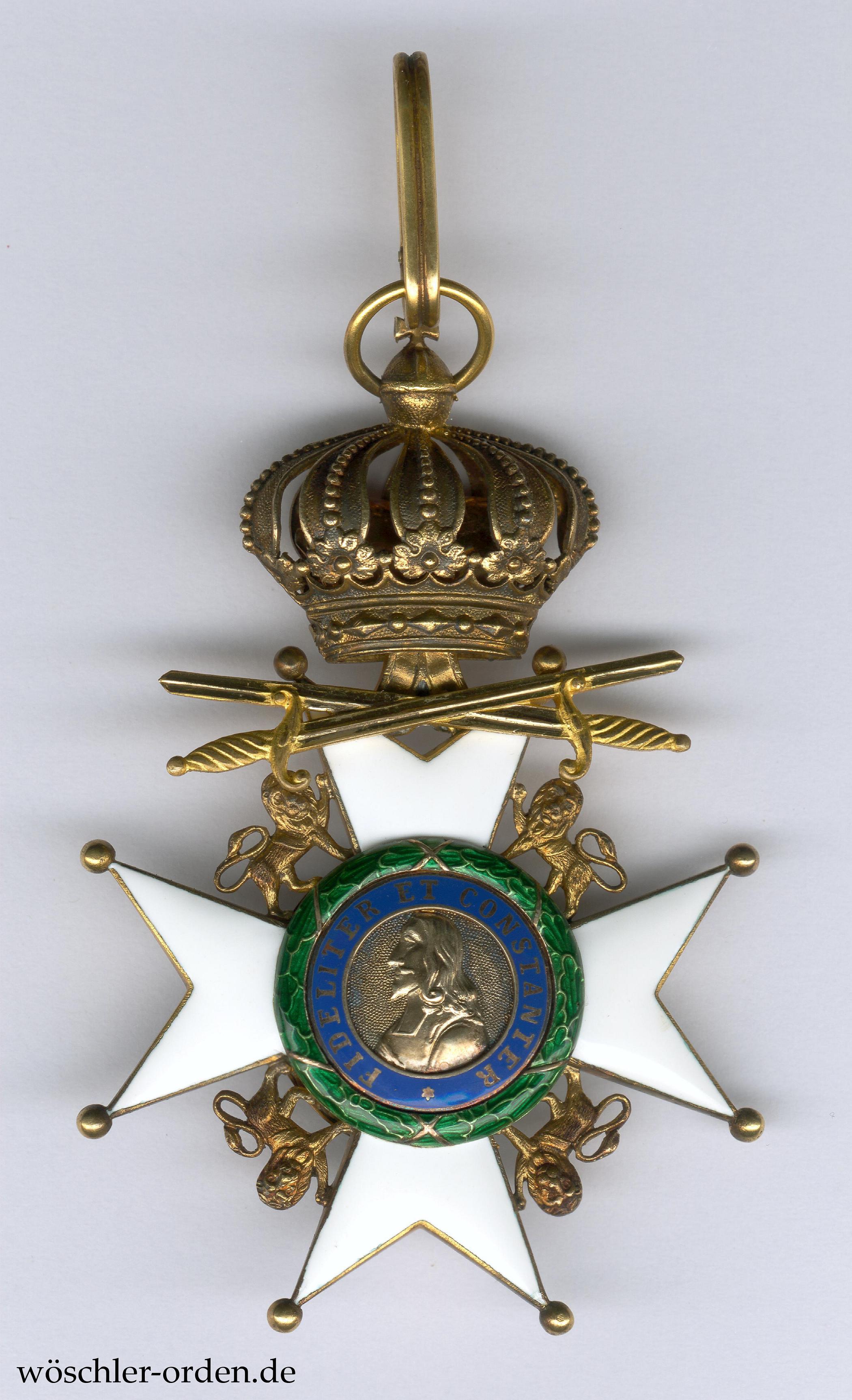 Anfertigung der Firma Paul Meybauer, Berlin, Silber mehrteilig gefertigt, vergoldet und teils opak, teils transluzid emailliert. Die oberhalb des oberen Kreuzarmes angebrachten „Schwerter am Ring“ Buntmetall vergoldet, verstiftet und verlötet.