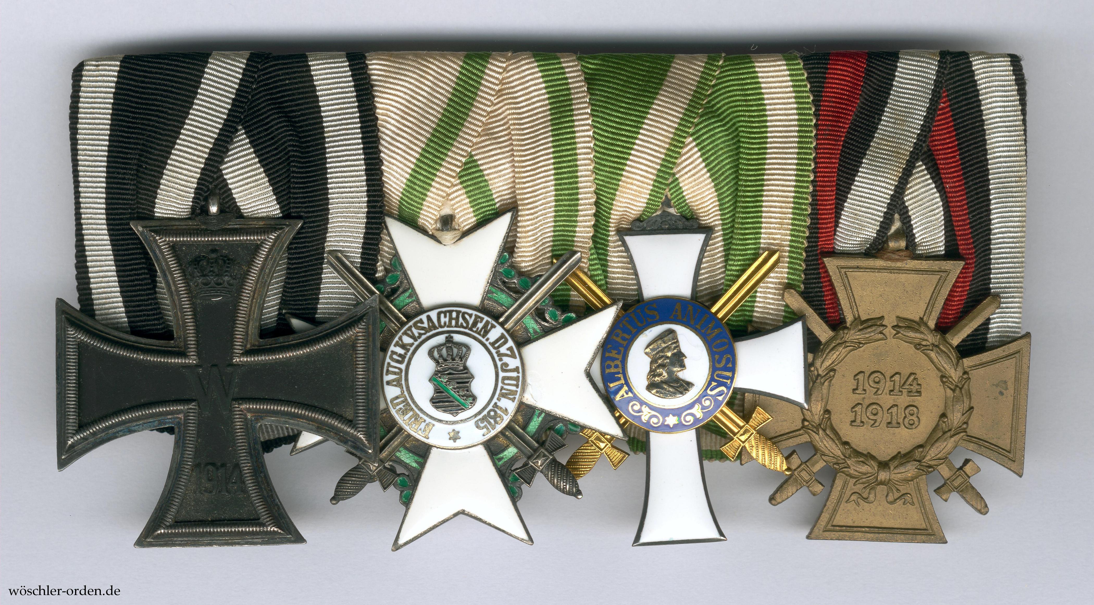 Deutsches Reich, 4er Ordensschnalle eines vormals Königlich Sächsischen Offiziers und Veteranen zumindest des Weltkriegs, mit folgenden Auszeichnungen:
