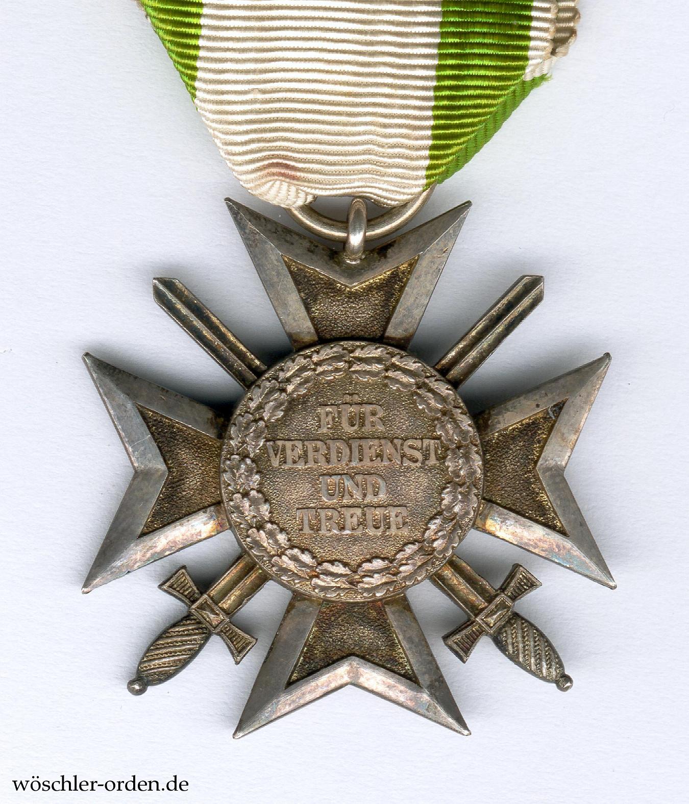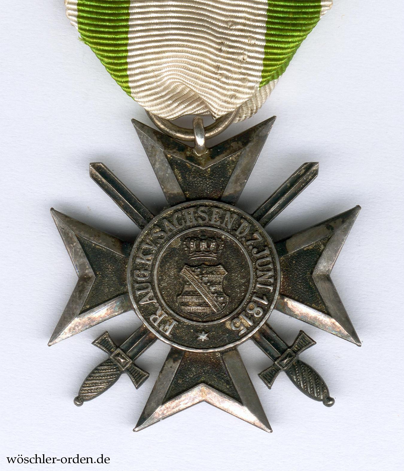 Das Verdienstkreuz des Verdienstordens wurde mit Statutennachtrag am 31. Januar 1876 durch König Albert gestiftet und ersetzte die bisherige goldene Medaille. Für Verdienst im Felde konnte das Kreuz mit Schwertern an Feldwebel und Unteroffiziere verliehen werden. Bis 1917 erfolgten lediglich 277 Verleihungen des Verdienstkreuzes mit Schwertern, Roth wie auch Arnold/Weber/Keil geben übereinstimmend376 Verleihungen für den Weltkrieg an.