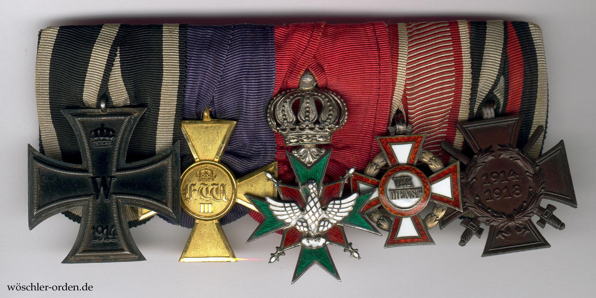 Deutsches Reich, 5-teilige Große Ordensschnalle höchstwahrscheinlich des Reichswehr-Majors a. D. Karl von Heusinger (geb. 1878), mit folgenden Auszeichnungen: