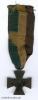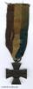 Wohl Gusseisen geschwärzt, an massiver, mitgegossener Ringöse mit Bandring. Diese Kreuze wurden aus dem Eisen der Geschütze des am 5. April 1849 bei Eckernförde genommenen dänischen Linienschiffes „Christian VIII.“ gefertigt.