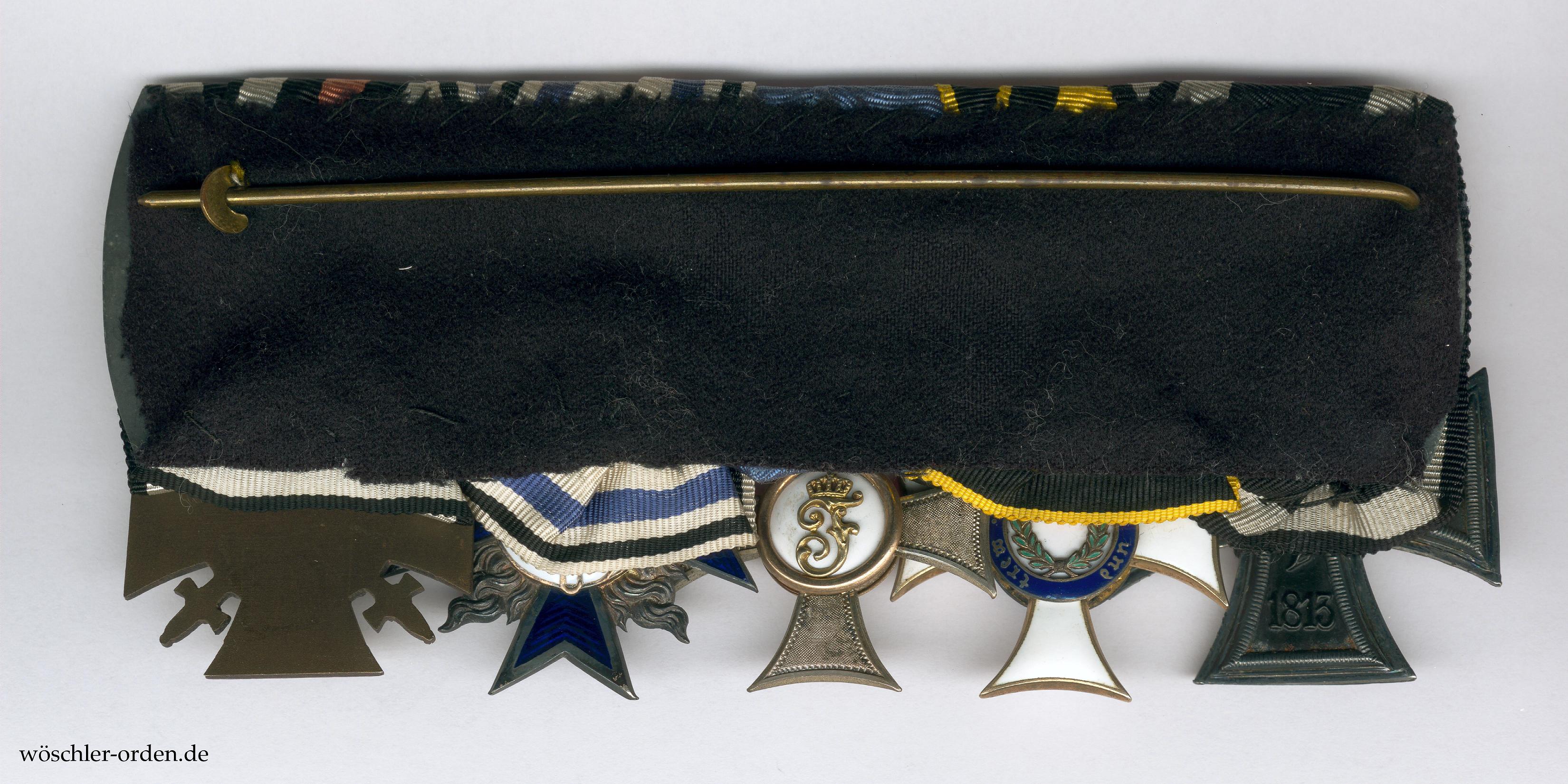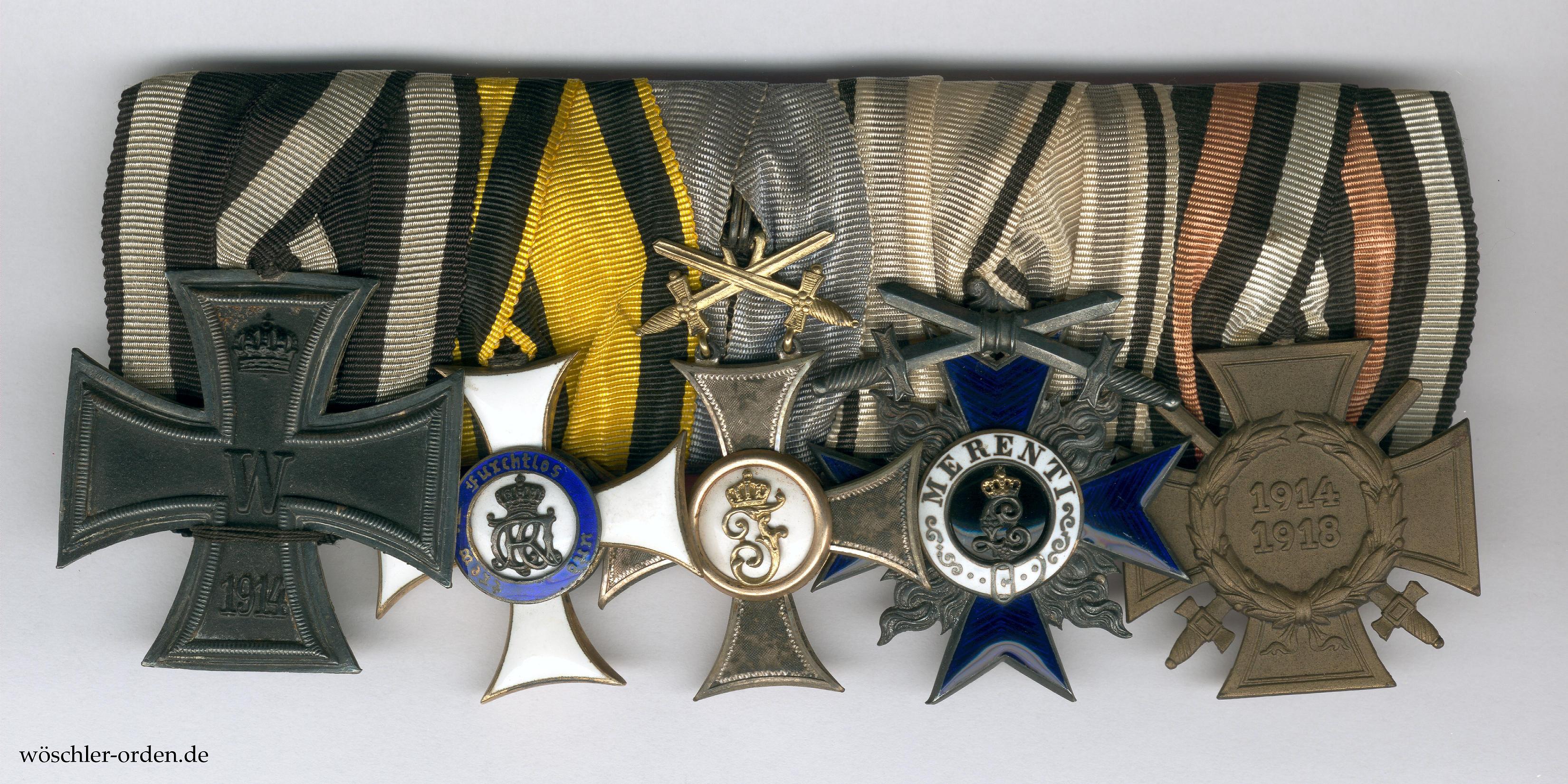 Deutsches Reich, 5er Ordensschnalle eines hochdekorierten, vormals Königlich Württembergischen Offiziers des Weltkrieges, mit folgenden Auszeichnungen: