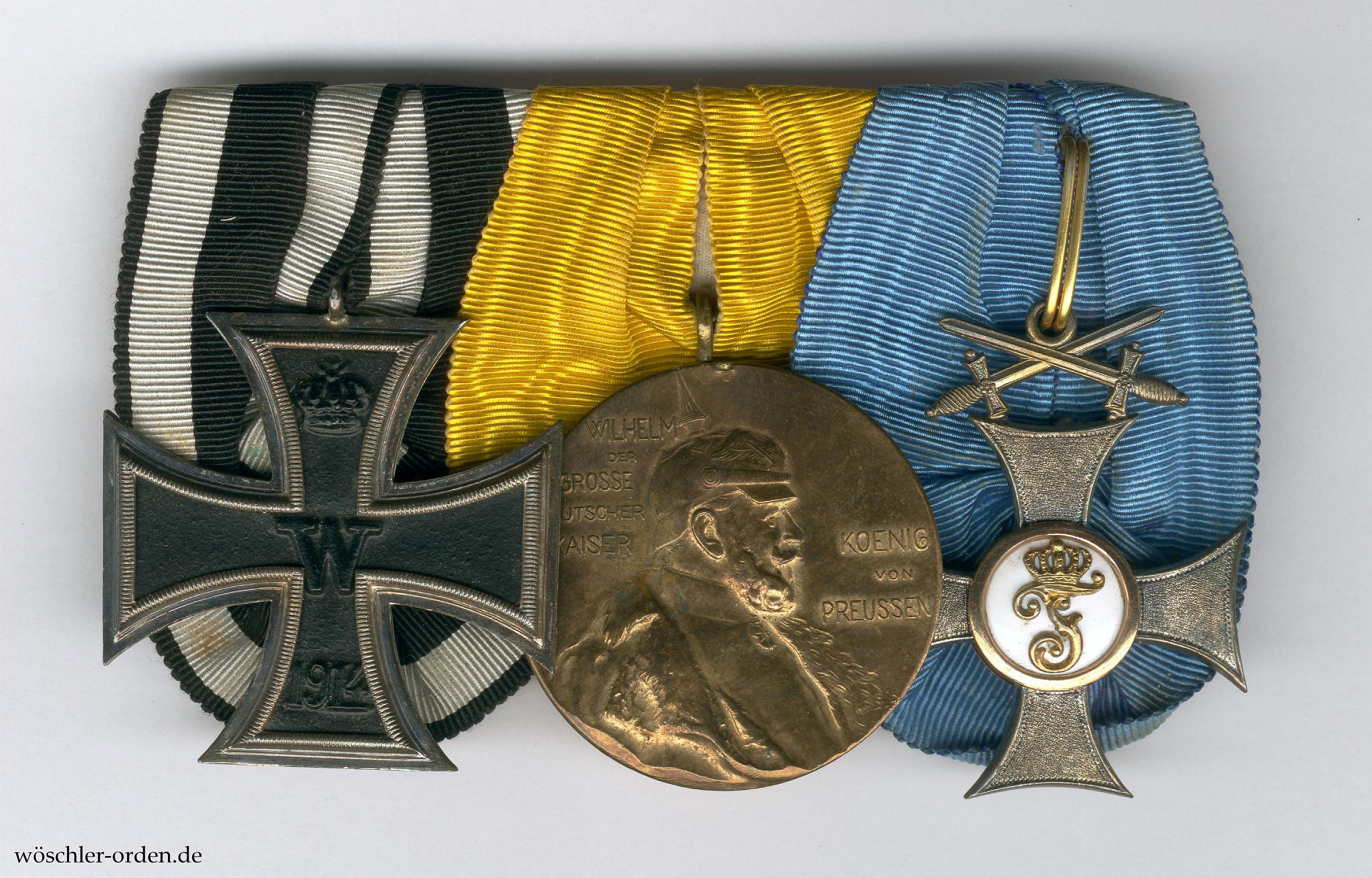 Preußen, 3er Ordensschnalle eines Subalternoffiziers des Weltkrieges, mit folgenden Auszeichnungen: