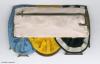 Die Bänder ordentlich bogenförmig vernäht, rückseitig weiße Seidenabdeckung.