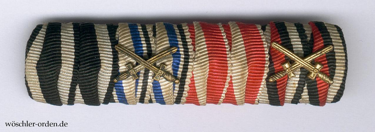 Deutsches Reich, 4er Feldspange wohl eines vormals Königlich Bayerischen Subalternoffiziers und Weltkriegsveteranen, für folgende Auszeichnungen: