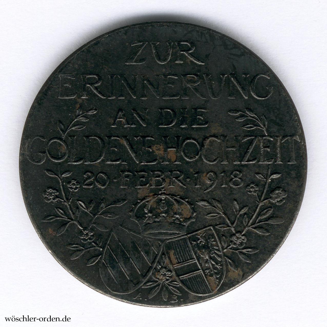 König Ludwig III. hatte die Absicht, an diejenigen Truppenteile, deren Inhaber er war, als Weihnachtsgabe im Jahre 1918 eine Geschenkmedaille verteilen zu lassen. Diese Medaille sollte zugleich ein nachträgliches Erinnerungszeichen sein an die Feier der goldenen Hochzeit des Königspaares am 20. Februar 1918. Es wurden davon ungefähr 14.000 Stück aus schwarz gebeiztem Eisen hergestellt und zwar, weil nicht zum Tragen bestimmt, ohne Öse und Ring. Der Entwurf der Vorderseite stammt von Professor Theodor Georgii, derjenige der Rückseite von Münzmeister Alois Boersch, beide in München. Die Novemberrevolution verhinderte jedoch die Verteilung der Medaillen und diese ruhten dann in Kisten verwahrt mehrere Jahre unbeachtet auf dem Dachboden des Münzgebäudes in München. Erst im Frühjahr 1922 wurden sie an Kronprinz Rupprecht ausgefolgt, weil die Herstellungskosten von seinem am 18. Oktober 1921 verstorbenen Vater aus privaten Mitteln bezahlt worden waren. Kronprinz Rupprecht verteilte zunächst eine größere Zahl dieser Gedenkmedaillen ohne Öse und Band an offizielle Teilnehmer an der feierlichen Beisetzung seiner verstorbenen Eltern, später auch an solche Persönlichkeiten in Bayern, welche sich besondere Verdienste um die „Wiedererweckung und Pflege des vaterländischen Gedankens“ erworben hatten. Einer Anregung aus dem Kreise der Inhaber Folge leistend, gestatte er später, dass die Medaille auf Kosten der damit Geehrten mit Öse und Ring versehen und am Bande der Jubiläumsmedaille für die Armee vom Jahr 1905 getragen werden durfte.