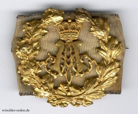 Königliche Familie der Herzöge von Bayern, Prinz-Alfons-Erinnerungsabzeichen auf grünem Bande für vaterländische Verdienste um das Schützenwesen, hier für Mitglieder selbständiger Feuerschützen- und Zimmerstutzen-Gesellschaften, die dem bayerischen Schützenverband angeschlossen waren, sowie für Mitglieder von Armbrustschützengilden.