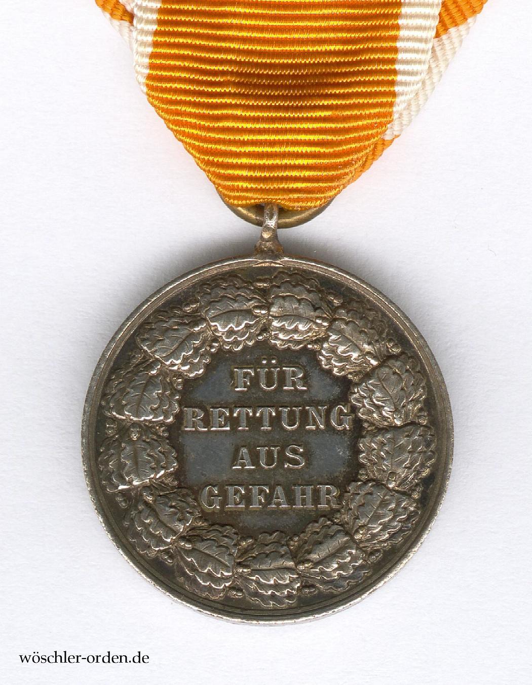Königreich und Freistaat Preußen, Rettungsmedaille am Bande, verliehen 1833 bis 1918 und 1925 bis 1934, bzw. bis 1837 als „Verdienstehrenzeichen für Rettung aus Gefahr“.