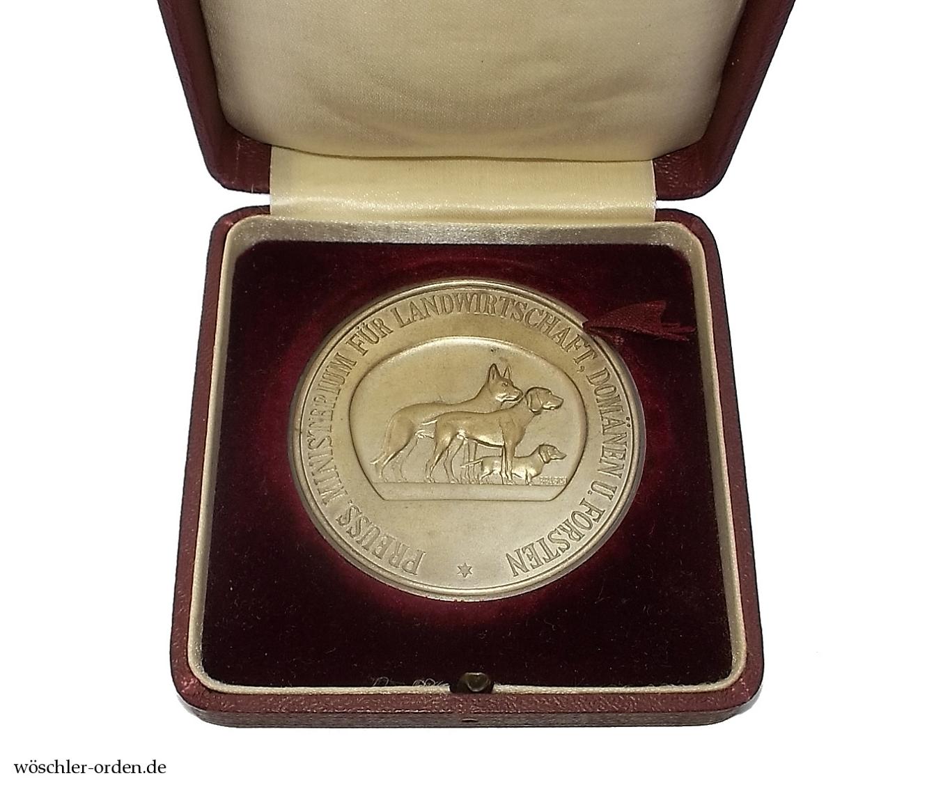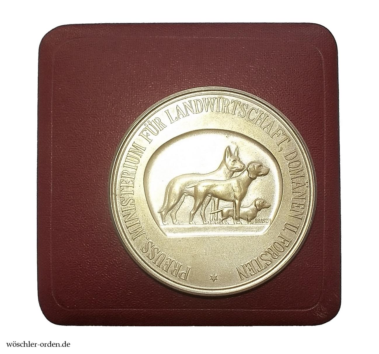 Die Staatsmedaille für Hundezucht wurde 1887 in zwei Stufen, Bronze und Silber, zugleich mit der Staatsmedaille für Geflügelzucht gestiftet. Verliehen wurde die Medaille durch das Ministerium für Landwirtschaft, Domänen und Forsten. Nachdem die Verleihungen während des Weltkrieges ausgesetzt waren, wurden sie ab 1921 in veränderter Gestaltung wieder aufgenommen. Die Umbenennung der Behörde zu „Ministerium für Landwirtschaft“ im Jahre 1933 machte eine letzte Abänderung der preußischen Medaille nötig, bevor sie nach 1934, im Zuge der Gleichschaltung, durch ein reichsweit verliehenes Modell ersetzt wurde.