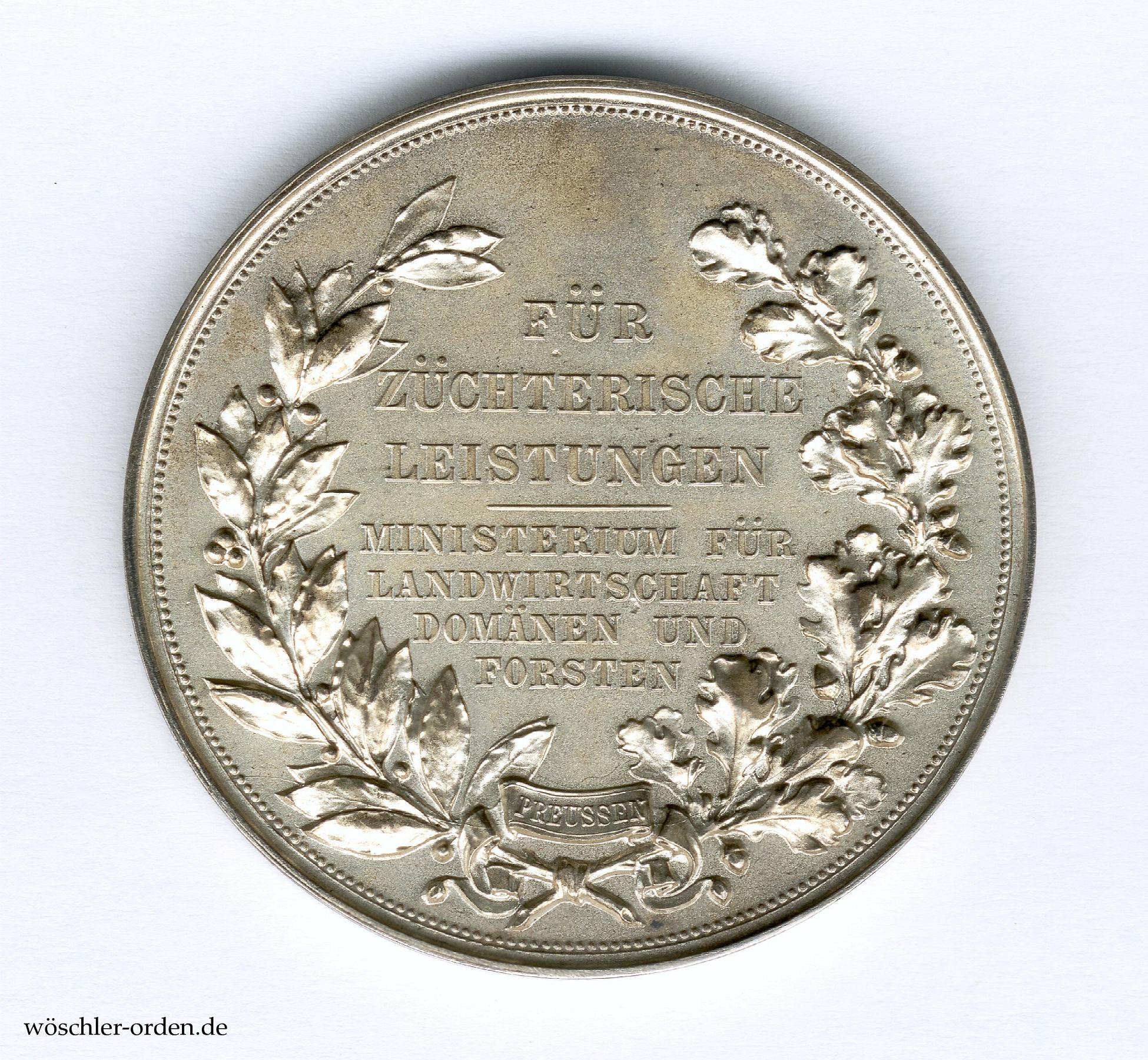 Literatur: Bannicke, Elke und Tewes, Lothar: Die preußischen Staatsmedaillen für landwirtschaftliche Verdienste und Leistungen von 1783 bis 1934. In: Orden und Ehrenzeichen. Das Magazin für Sammler und Forscher. BDOS-Jahrbuch 2000. S. 98–113.