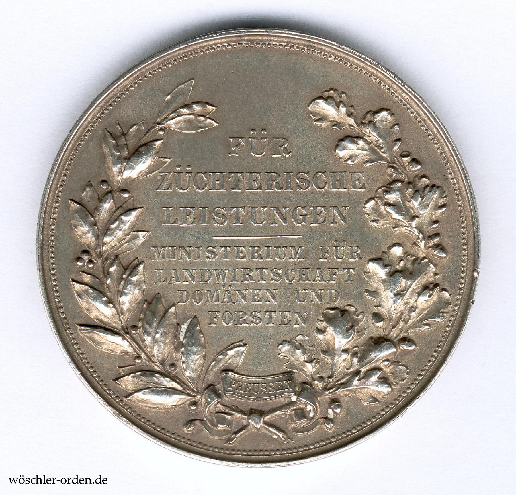 Literatur: Bannicke, Elke und Tewes, Lothar: Die preußischen Staatsmedaillen für landwirtschaftliche Verdienste und Leistungen von 1783 bis 1934. In: Orden und Ehrenzeichen. Das Magazin für Sammler und Forscher. BDOS-Jahrbuch 2000. S. 98–113.
