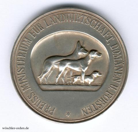 Die Staatsmedaille für Hundezucht wurde 1887 in zwei Stufen, Bronze und Silber, zugleich mit der Staatsmedaille für Geflügelzucht gestiftet. Verliehen wurde die Medaille durch das Ministerium für Landwirtschaft, Domänen und Forsten. Nachdem die Verleihungen während des Weltkrieges ausgesetzt waren, wurden sie ab 1921 in veränderter Gestaltung wieder aufgenommen. Die Umbenennung der Behörde zu „Ministerium für Landwirtschaft“ im Jahre 1933 machte eine letzte Abänderung der preußischen Medaille nötig, bevor sie nach 1934, im Zuge der Gleichschaltung, durch ein reichsweit verliehenes Modell ersetzt wurde.