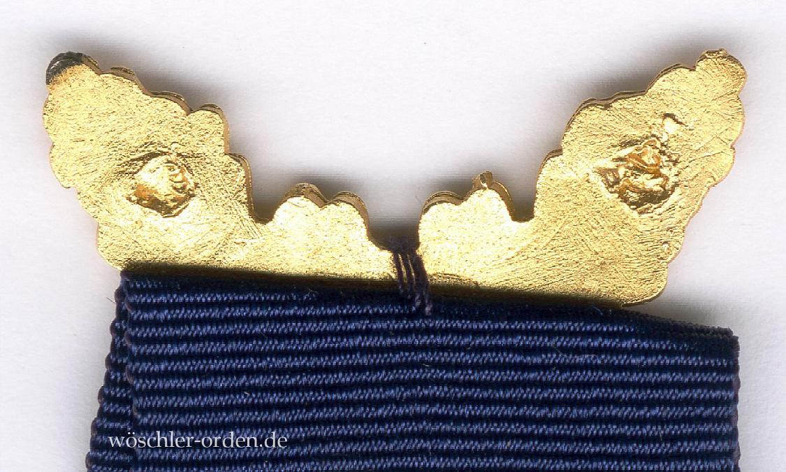 Beide Splinte fehlen! Hiervon abgesehen gute Erhaltung, mit vollständig erhaltener Vergoldung; die Dekoration auf ein ungewöhnlich schmales Band aufgenäht.