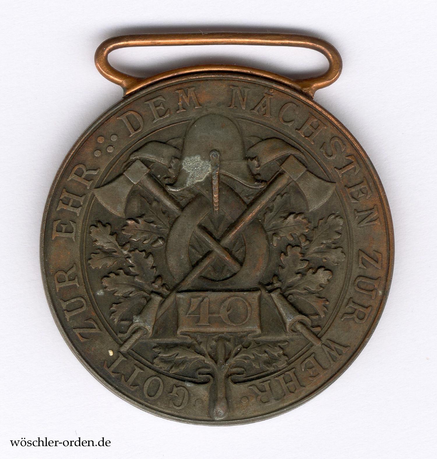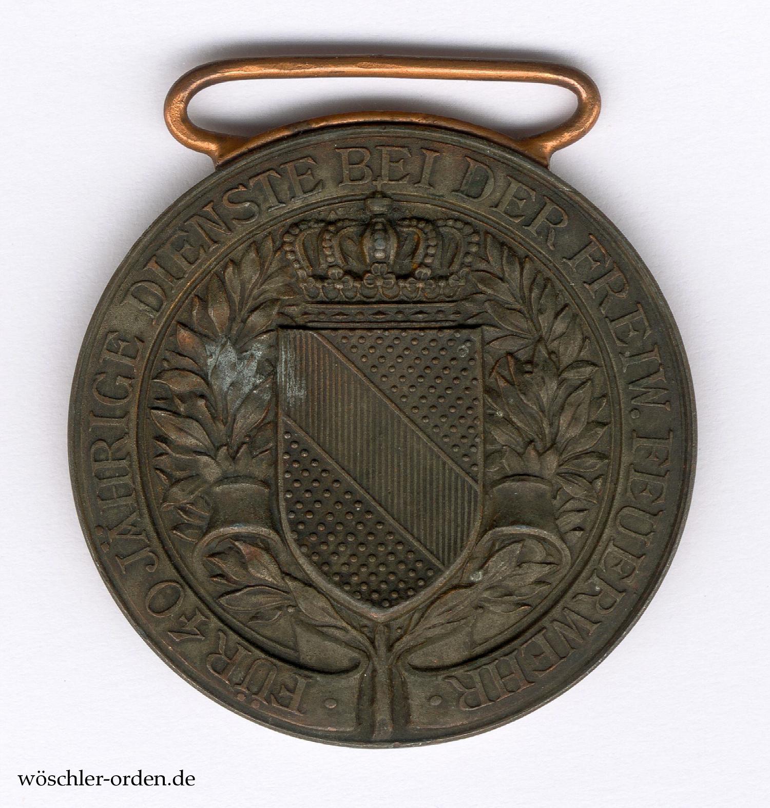 Großherzogtum und Freistaat Baden, Ehrenzeichen für 40-jährige Dienstleistung bei der Freiwilligen Feuerwehr, verliehen 1899 bis 1936, bzw. bis 1918 als „Ehrenzeichen für Mitglieder der Freiwilligen Feuerwehren für 40 Dienstjahre“.
