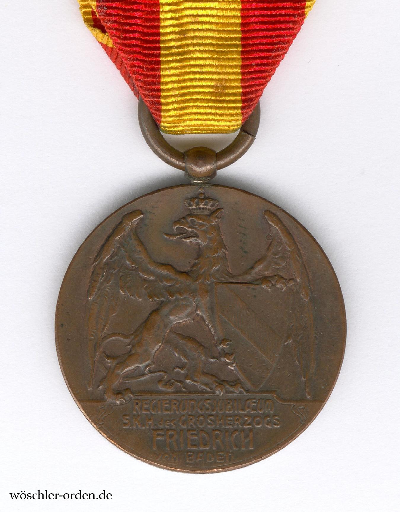 Diese Jubiläumsmedaille wurde durch Großherzog Friedrich I. aus Anlass seines 50-jährigen Regierungsjubiläums am 25. April 1902 für alle Personen, die während seiner Regierung ihm und dem badischen Lande „in öffentlicher Tätigkeit Dienste geleistet haben“, gestiftet. Sie wurde relativ „flächendeckend“ an Militär, Hof- und Staatsbeamtenschaft, Politik, Klerus sowie weitere in der Öffentlichkeit stehende Personengruppen vergeben. Insgesamt wurden 30.000 Exemplare geprägt, die wohl auch großteils zur Ausgabe kamen. Fürstlichkeiten, die an den Jubiläumsfeierlichkeiten teilnahmen, erhielten eine nicht-statutengemäße Ausgabe in Gold, die als ein persönliches Geschenk des Großherzogs zu verstehen ist.