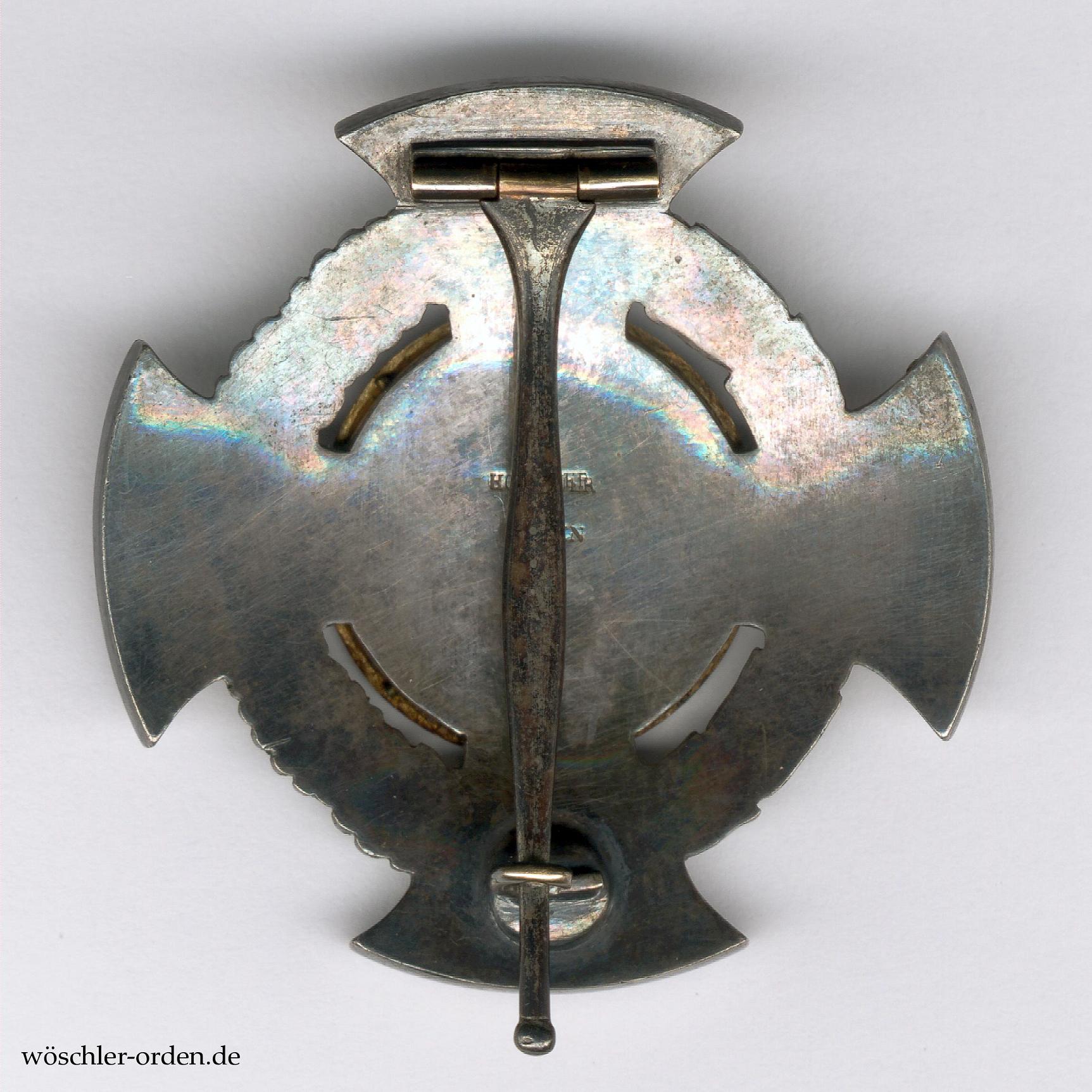 Exemplar aus der Stiftungszeit des dritten und endgültigen, durch die Fürsten als preußische Untertanen ab 1852 verliehenen Modells. Der Korpus Silber, teils vergoldet, das Medaillon echt golden, jeweils emailliert. Die Emaille von besonders feiner Qualität und meisterhaft plangeschliffen und poliert. Rückseitig mit einer bauchigen Tragenadel mit kugeligem Ende, außerdem im Feld zweizeilig „HOSSAUER / BERLIN“ punziert. Die Firma Johann George Hossauer, Berlin, war bis zu ihrem Verkauf 1859 erster und einziger Lieferant der Insignien des dritten Modells.