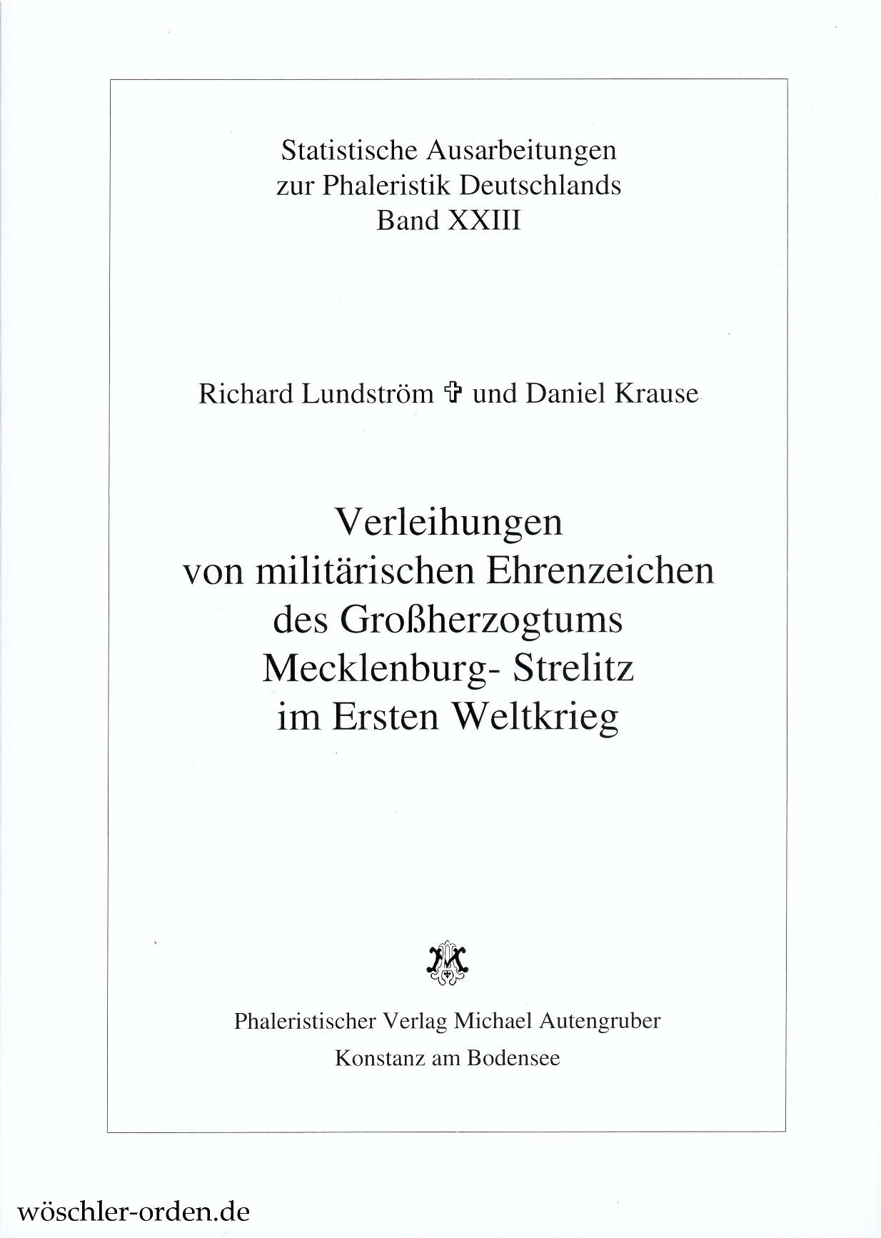 Lundström, Richard und Krause, Daniel: Verleihungen von militärischen Ehrenzeichen des Großherzogtums Mecklenburg-Strelitz im Ersten Weltkrieg.