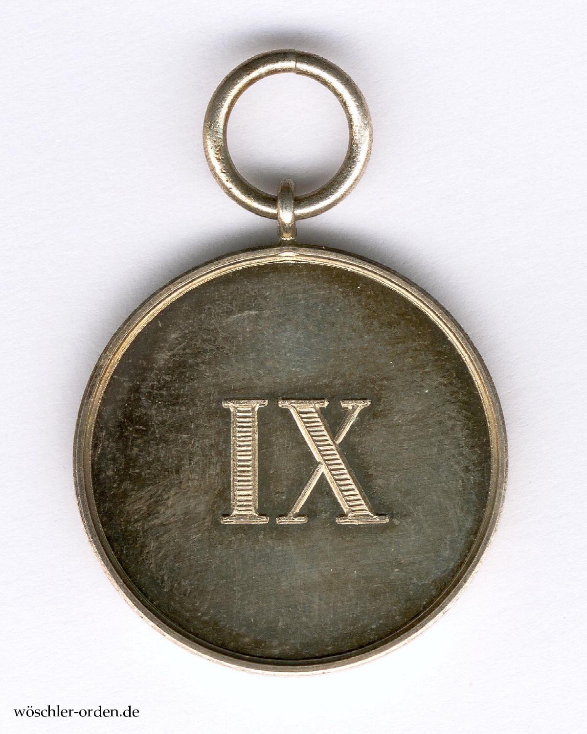 Exemplar des zweiten, ab 1913 und somit nur noch an die Gendarmerie verliehenen Modells in Form einer Medaille. Neusilber geprägt, an einfacher, angelöteter Ringöse mit offenem Bandring. Ohne eine Herstellerkennzeichnung, jedoch zweifelsfrei aus der 1913 erfolgten Lieferung des Hofgoldschmieds Bernhard Knauer, Oldenburg. Verliehen wurden hiervon lediglich 23 Exemplare.